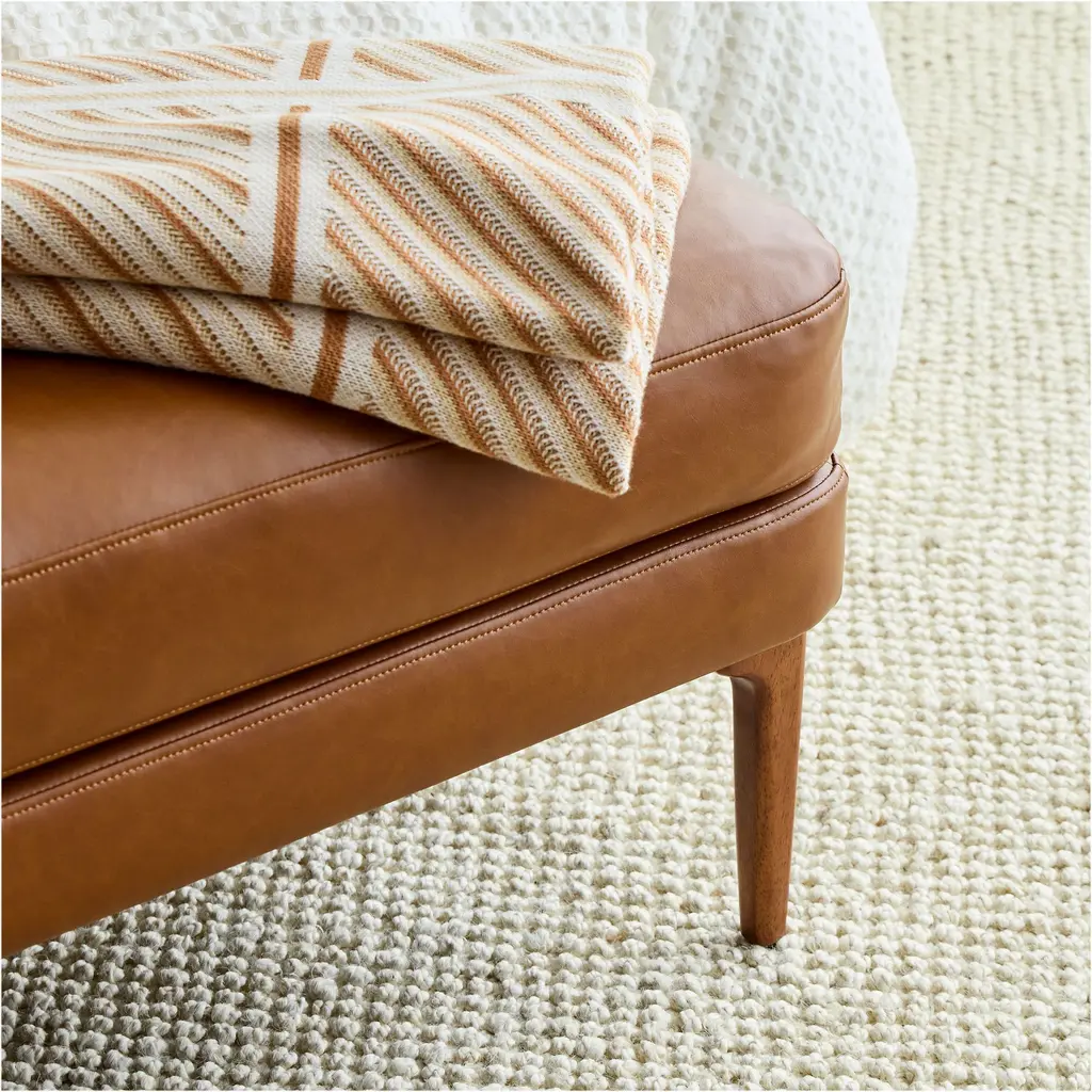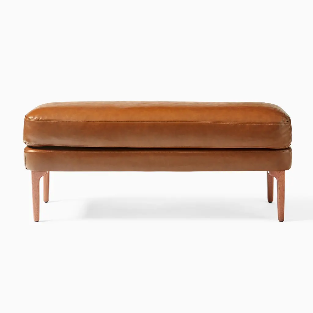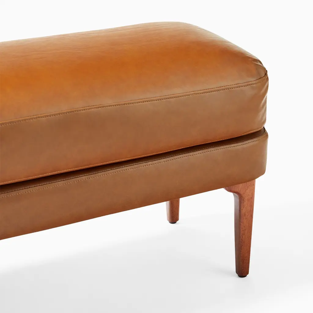 Compact, clean-lined frame looks good from every angle. Versatile in an entryway, living room or at the foot of a bed. Covered in your choice of beautiful leather. Contract Grade, so you know it's built to last.