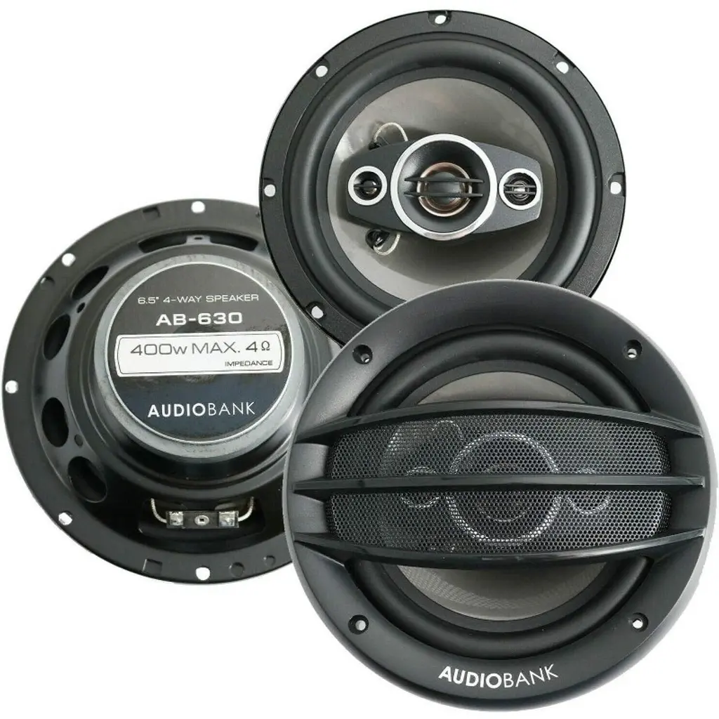 Audiobank Ab-630 400 Watts Power Handling 6.5-inches 4-way Car Audio Stereo Coaxial Speakers With Frequency Response: 65-20000 Hz And 2X15