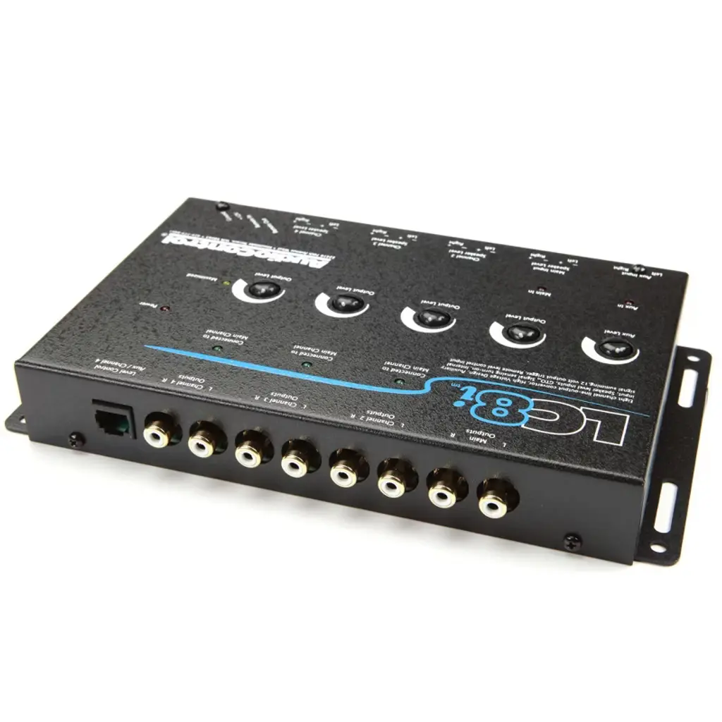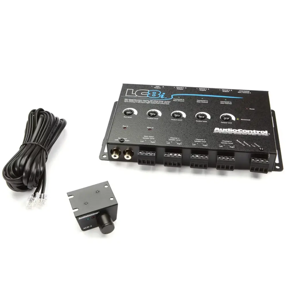 Audio Control LC8i 8 Channel Line Out Converter with Auxiliary InputThe LC8i is a highly flexible eight-channel signal processor with active input circuitry that accepts speaker-level inputs, of up to 400 watts per channel, from factory-installed source units or amplifiers. It converts them to high-quality pre-amp signals that can then be directed to aftermarket processors and/or amplifiers. This means users will enjoy maximum sound quality while maintaining the use of factory volume and steering wheel controls. Designed for maximum flexibility, the LC8i is equipped with an auxiliary input that allows the simple addition of secondary source units like iPods and satellite radio tuners. By tapping the dash control knob, a user can switch back and forth between the main speaker-level inputs and the auxiliary input. Additionally, the multi-function dash knob provides both volume control of the Auxiliary input and level adjustments for the subwoofer output. The LC8i uses proven OEM integration technology derived from AudioControl’s highly popular LC6i, LC7i and The Epicenter® Plus signal processors. The speaker-level inputs accept high wattage signals (up to 400 watts per channel), either full range or crossed over, and converts them to high-quality pre-amp signals. Signals from factory radios with built-in crossovers can be summed and combined internally to provide a full-range preamp signal. Customers wanting to offer sound quality that is clearly better than OEM systems can also easily add one of AudioControl’s many crossovers or equalizers after the LC8i, providing even greater control over factory signals. FEATURES Eight input and output channels – will accept 400 watt signals per channel Auxiliary input for easy interfacing of iPods or other portable audio devices Multi-function dash control (included) allows for Source Selection, Auxiliary Input Volume plus Subwoofer Level Control Selectable GTO™ Signal-sensing Turn-on Circuit