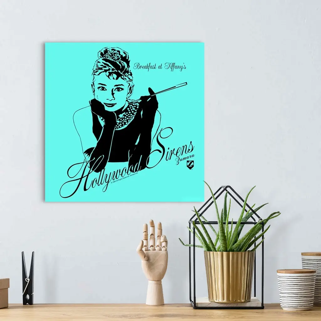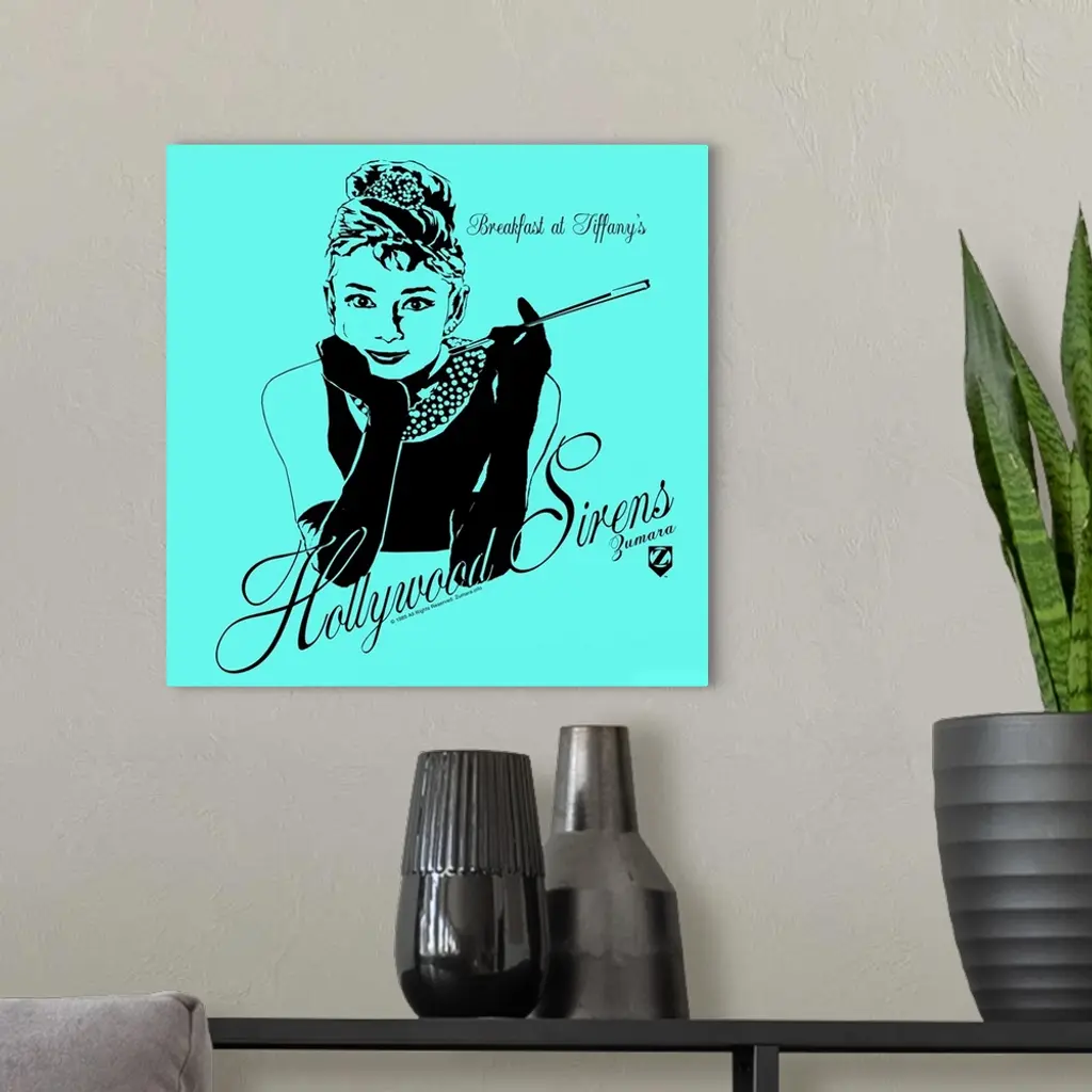 Audrey Hepburn Breakfast at Tiffanys Teal 1 wall art for home and office decor. Discover canvas art prints, photos, mural, big canvas art and framed wall art in GreatBigCanvas.com's varied collections.