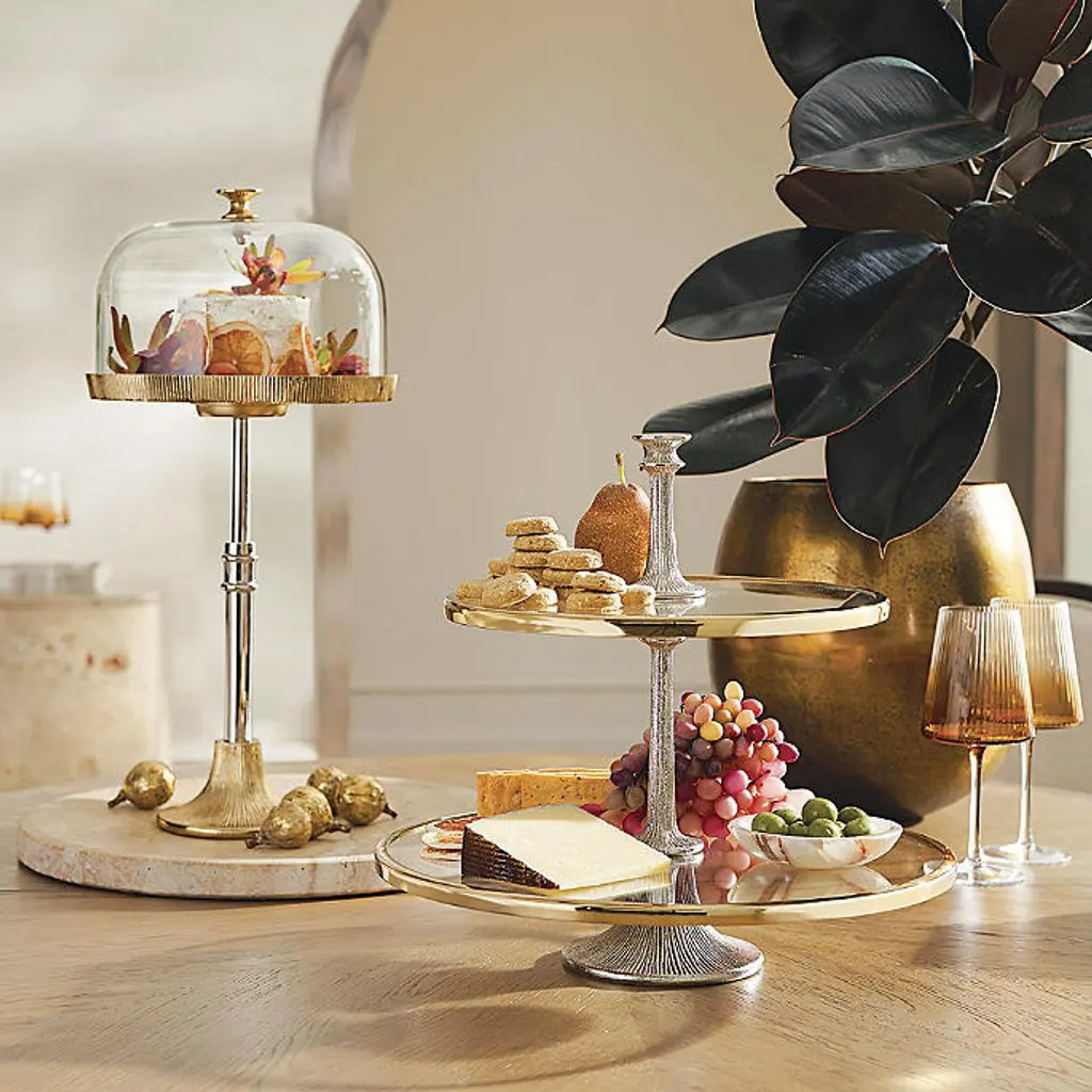 Serve in style with our exquisitely detailed Audrey Tiered Servers. Crafted of stainless steel in a mixed-metal finish and accented with textured detailing. Crafted of stainless steel in a mixed-metal finish Accented with textured detailing Hand washing recommended Multitiered servers require some assembly Cake Stand adjustable up to height of 24" Cake Stand includes a glass cloche At Frontgate, our primary focus is quality. We guarantee that every product we sell will stand up to the supreme test – our customers' satisfaction. To learn more about our policies, visit our Shipping & Processing, Returns & Exchanges and Warranty & Price Guarantee pages. Serve in style with our exquisitely detailed Audrey Tiered Servers. Crafted of stainless steel in a mixed-metal finish and accented with textured detailing. Crafted of stainless steel in a mixed-metal finish Accented with textured detailing Hand washing recommended Multitiered servers require some assembly Cake Stand adjustable up to height of 24" Cake Stand includes a glass cloche At Frontgate, our primary focus is quality. We guarantee that every product we sell will stand up to the supreme test – our customers' satisfaction. To learn more about our policies, visit our Shipping & Processing, Returns & Exchanges and Warranty & Price Guarantee pages.