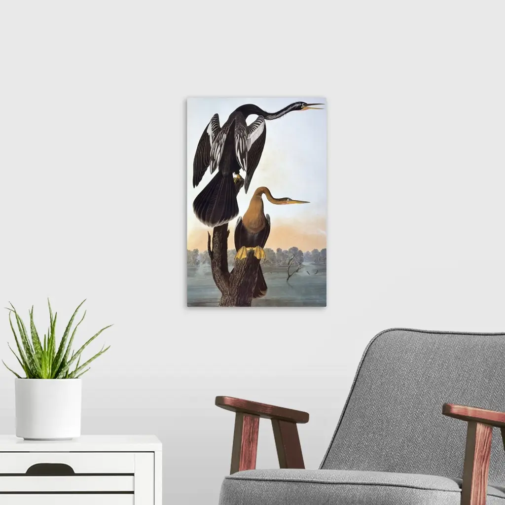 American anhinga (Anhinga anhinga), from John James Audubon's 'Birds of America,' 1827-1838.