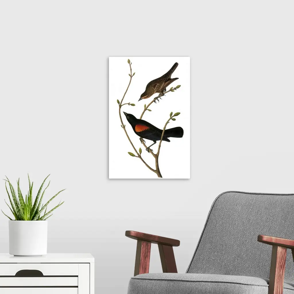 Red-winged Blackbird (Agelaius phoeniceus), from John James Audubon's 'The Birds of America,' 1827-1838.