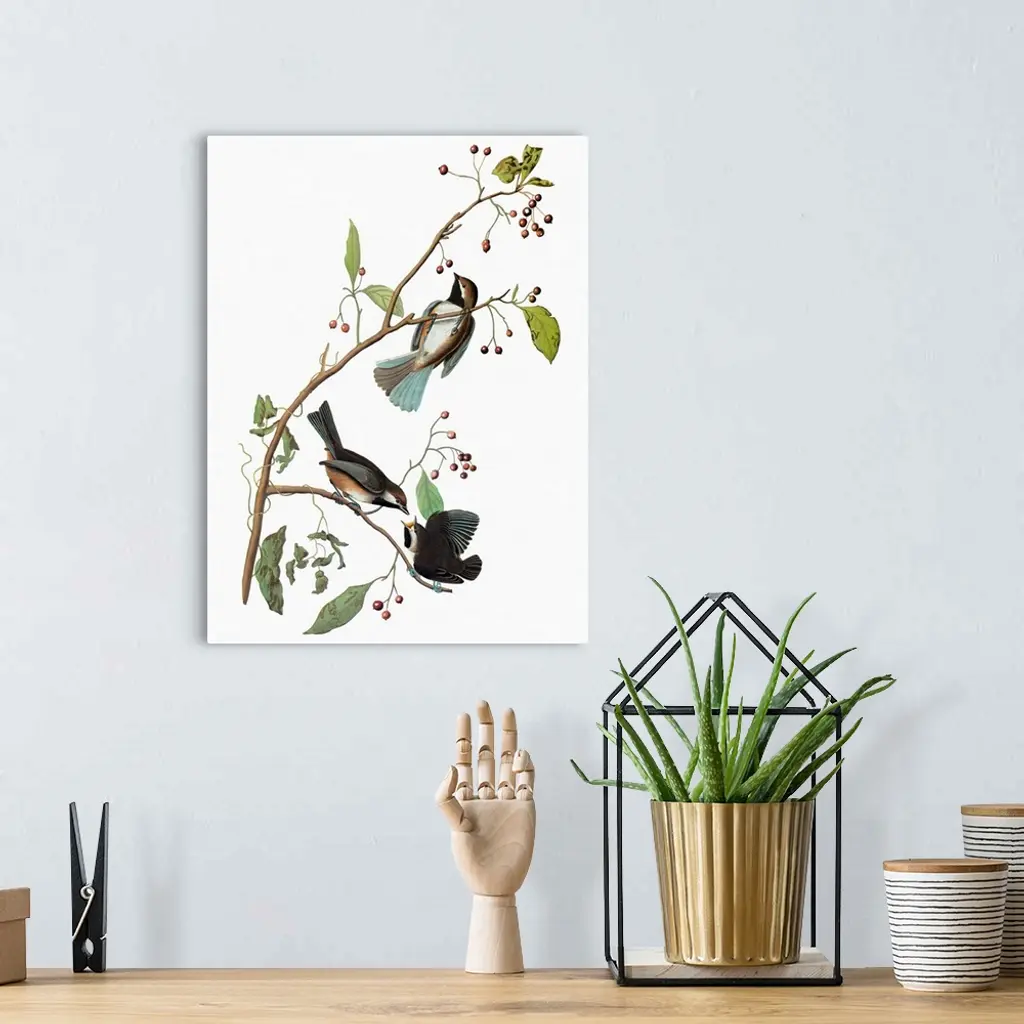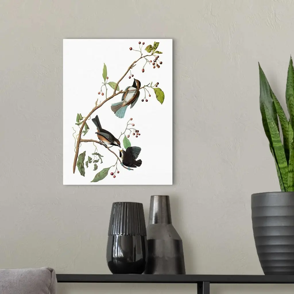 Boreal chickadee (Parus hudsonicus), from John James Audubon's 'The Birds of America,' 1827-1838.