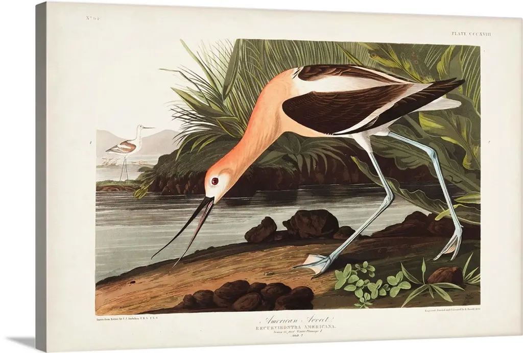 The Audubon Collection Group is a series of prints on watercolor paper, showcasing stunning depictions of majestic avian species. This piece is displayed under glass within a traditional black and gold gallery frame.