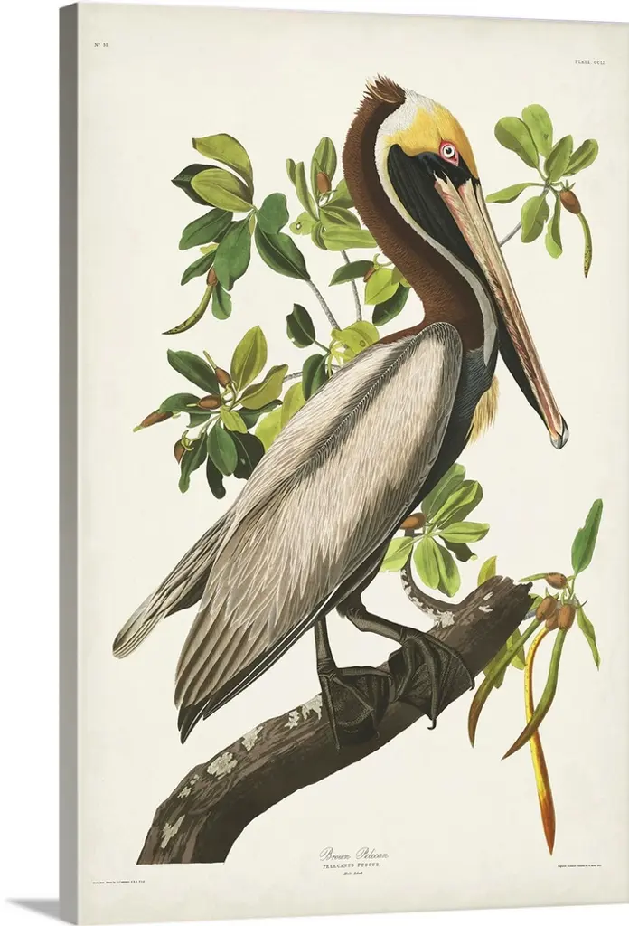 The Audubon Collection Group is a series of prints on watercolor paper, showcasing stunning depictions of majestic avian species. This piece is displayed under glass within a traditional black and gold gallery frame.