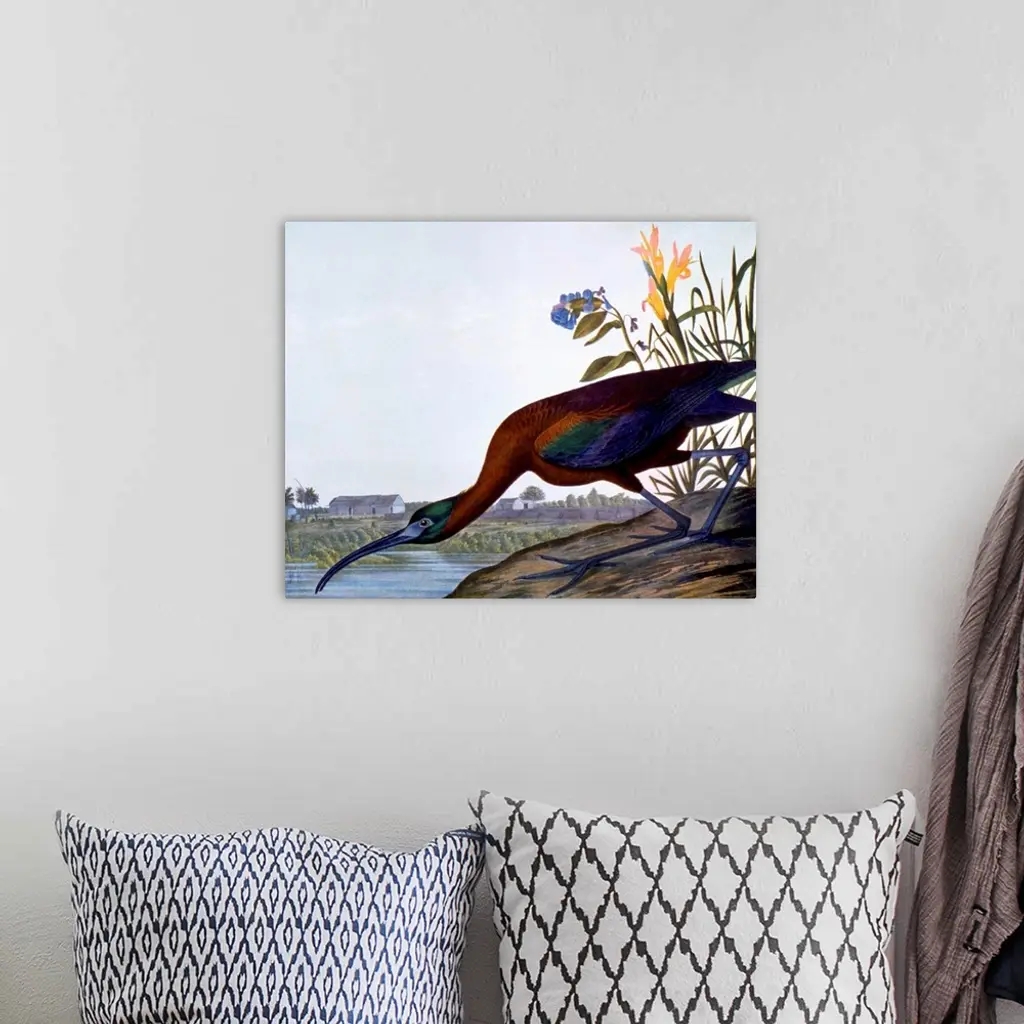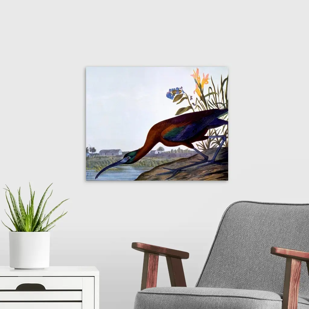 Glossy Ibis (Plegadis falcinellus). Lithograph, 1858, by Julius Bien after John James Audubon.
