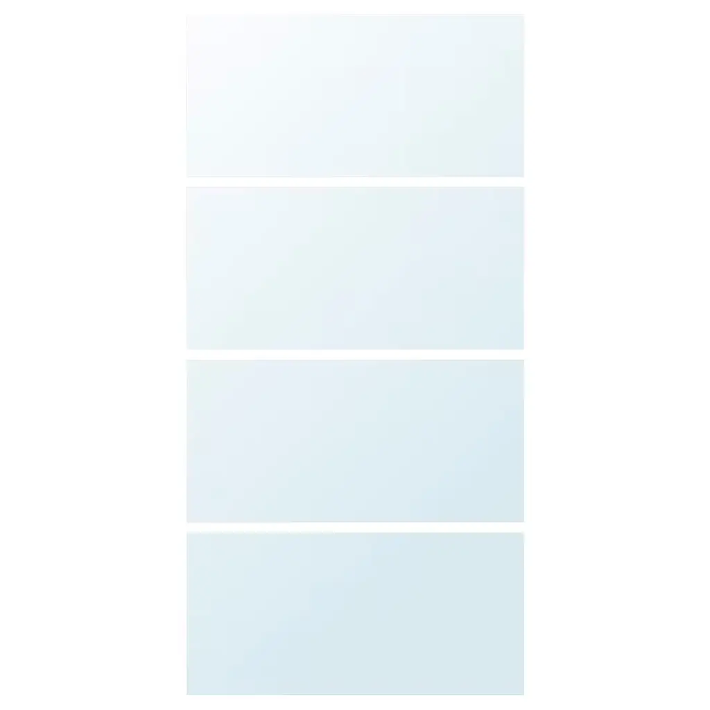 AULI 4 panels for sliding door frame - mirror glass 39 3/8x79 1/8 ". Sliding doors allow more room for furniture because they don’t take any space to open. Mirror doors is not only very handy, it also makes your room feel more spacious. Safety film reduces damage if glass is broken.