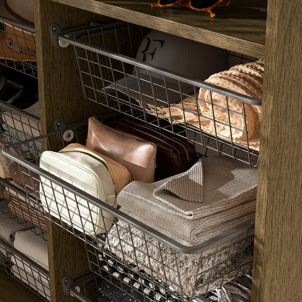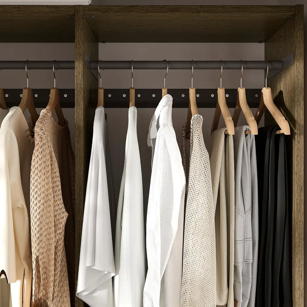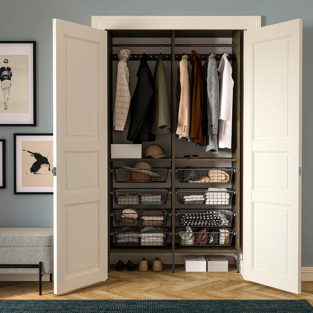 AURDAL Wardrobe combination - brown stained oak veneer/dark gray 49 1/4x15 3/4x87 ". The brushed veneer gives the furniture a unique look and a personal character. The long leg creates a beautiful look and is perfect if you have a high plinth at home. Fits with AURDAL wardrobe system.