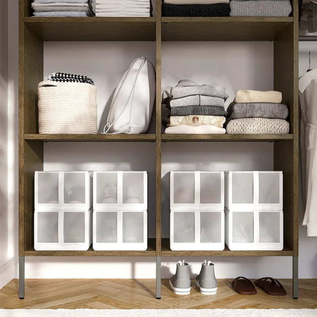 AURDAL Wardrobe combination - brown stained oak veneer/dark gray 70 5/8-83 5/8x15 3/4x87 ". The brushed veneer gives the furniture a unique look and a personal character. The long leg creates a beautiful look and is perfect if you have a high plinth at home. Fits with AURDAL wardrobe system.