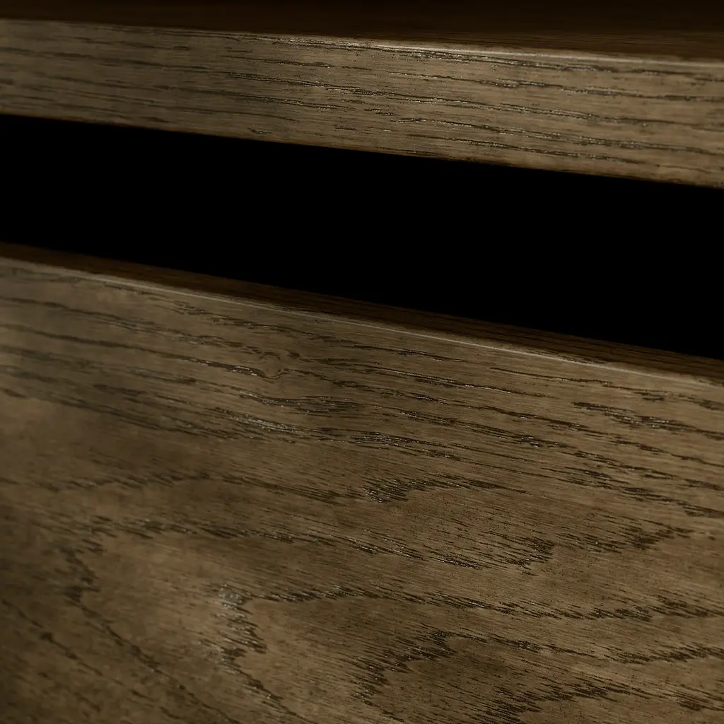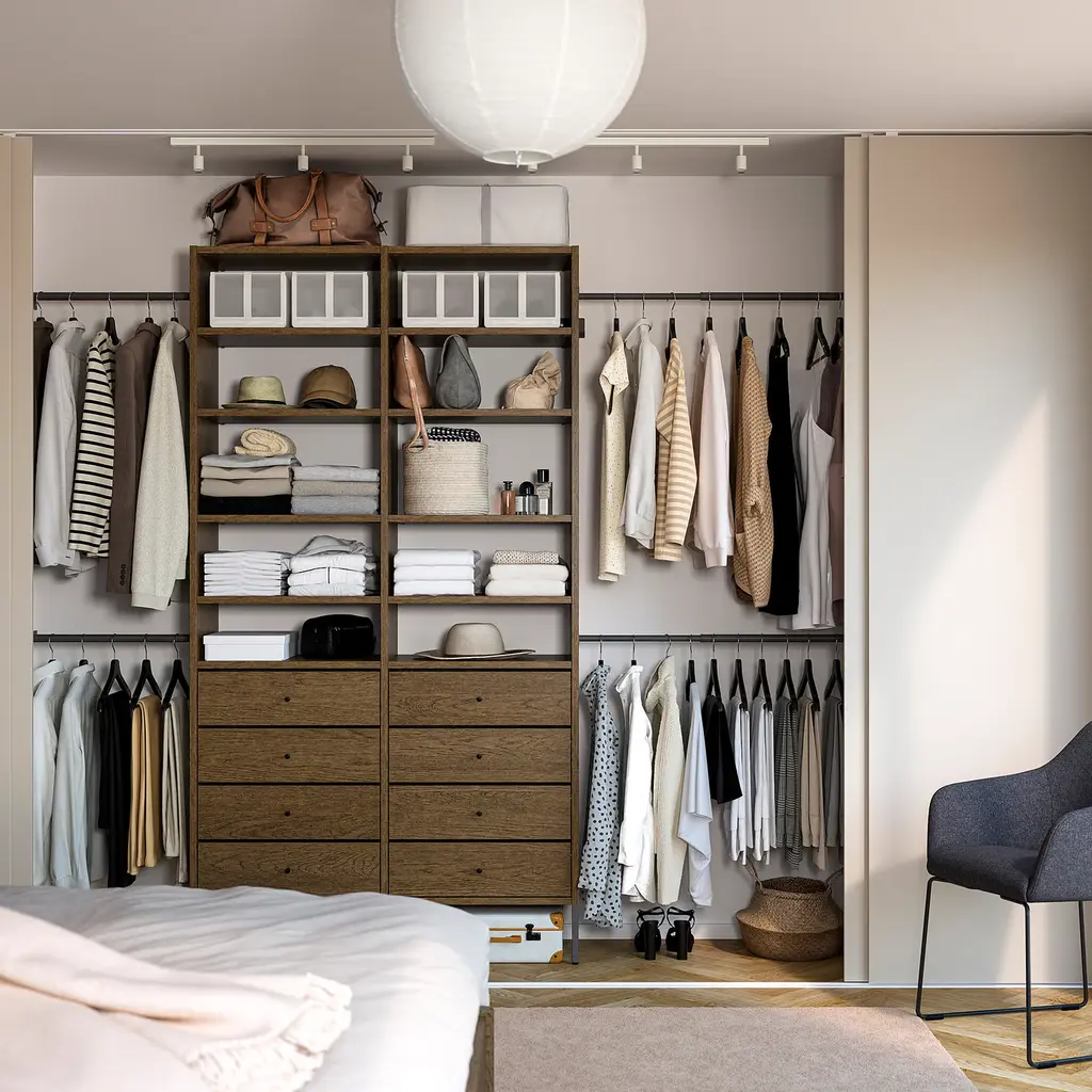 AURDAL Wardrobe combination - brown stained oak veneer/dark gray 92 1/8-118 1/8x15 3/4x87 ". The brushed veneer gives the furniture a unique look and a personal character. The long leg creates a beautiful look and is perfect if you have a high plinth at home. Fits with AURDAL wardrobe system.