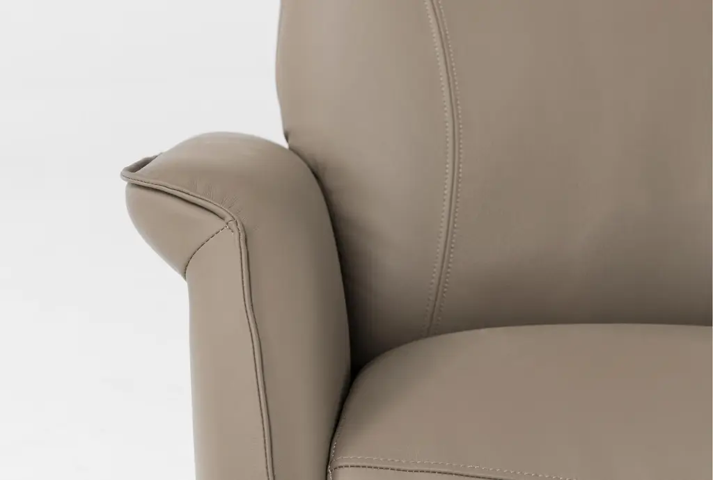 Aurelius Taupe Beige 31" Leather Power Swivel Recliner With Adjustable Headrest Battery & Usb