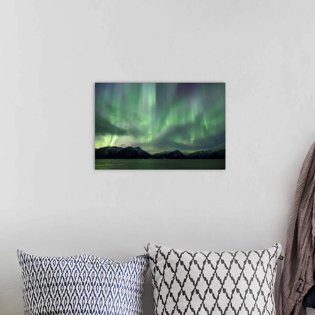 Aurora Borealis Dancing Above The Chugach Mountains And Turnagain Arm, Alaska