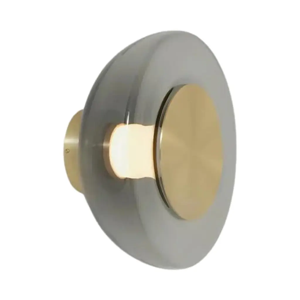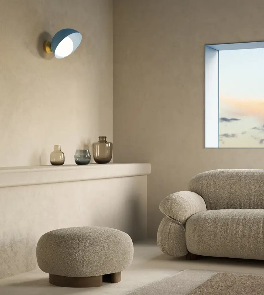 Aurora is a wall lamp with structure and decorative parts in metal available in Ancient White, Yellow Sunrise, Baby Blue, Baby Pink and Cappuccino. Middle sphere with brushed light gold finish. Diffuser in white glass.Led bulbs: 1x6w - E14Dimmer TRIACAurora is an eclectic and colorful collection. A multifaceted soul with a seductive retro allure, Its naming alludes to the light that takes over the sky just before sunrise, and the finishes recall the colors of early Italian industry. Available in every versions, it includes floor, table, ceiling, suspension and wall solutions.
