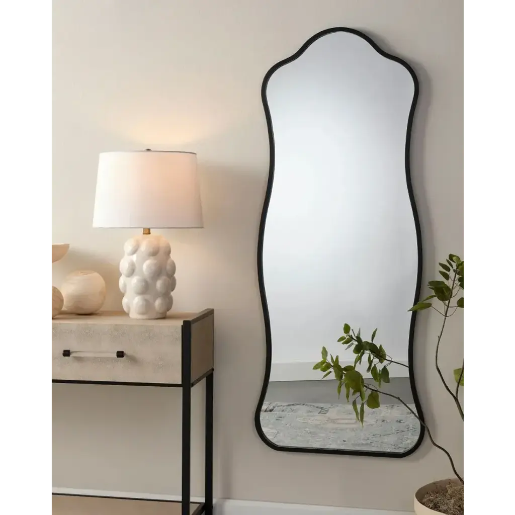 Step away from the square and refresh your home with this curvy wall mirror. Featuring a vertical orientation, its thin metal frame is meticulously hand-finished for a unique touch. Ideal for placement near the door for a quick fit check or in a living area to create an open, airy feel, this mirror is a stylish addition to any space.