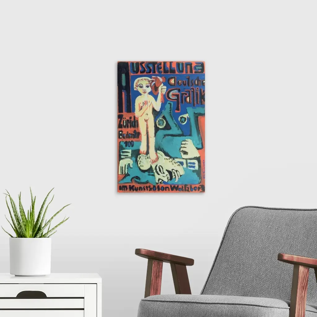 CH133719 Austellung, Deutsche Grafik im Kunstsalon Wolfsberg, c.1921 (gouache on paper) by Kirchner, Ernst Ludwig (1880-1938); 131.3x91.5 cm; Private Collection; (add.info.: maquette for the proposed exhibition of German Graphics at the Galerie Wolfsberg, Zurich; the exhibition never took place;); Photo .... Christie's Images; German, out of copyright
