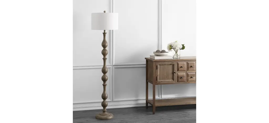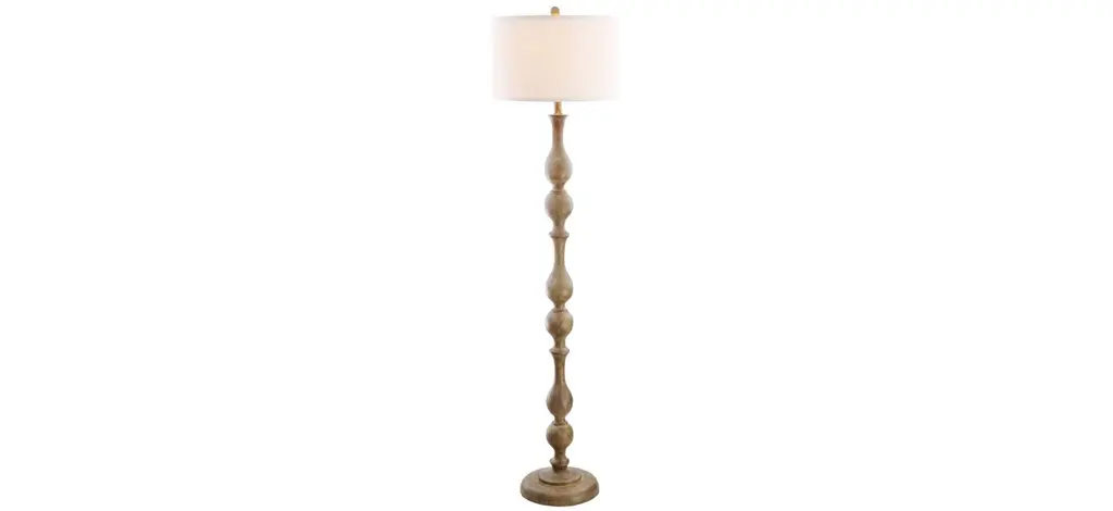 Finely crafted with gentle curves, this light brown Austen Floor Lamp complements any transitional decor. From its solid base to its crisp cotton shade, its natural texture and finish radiates warmth and sophistication in any living room.