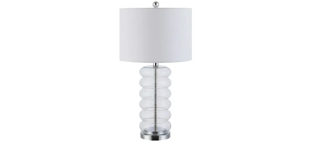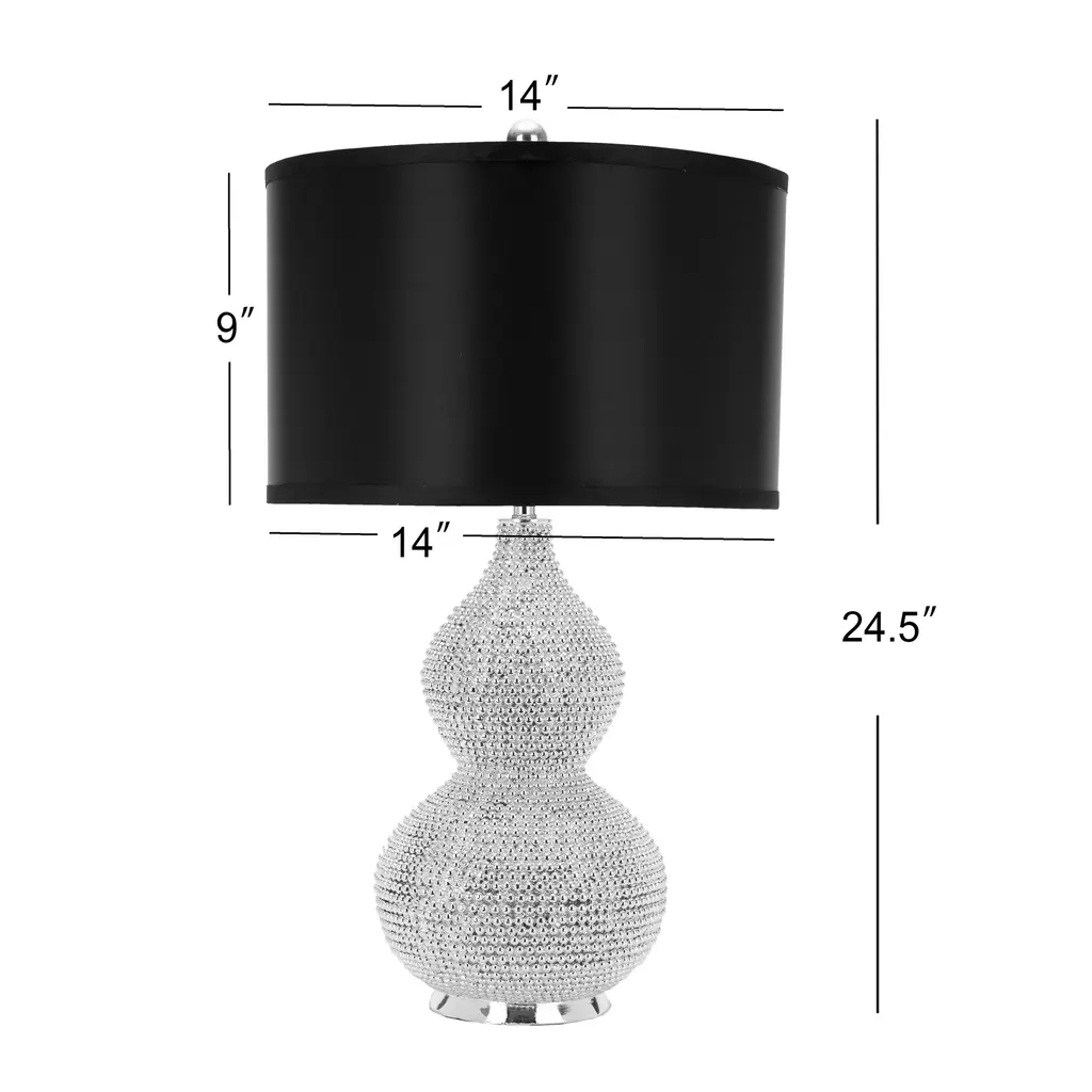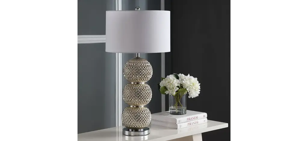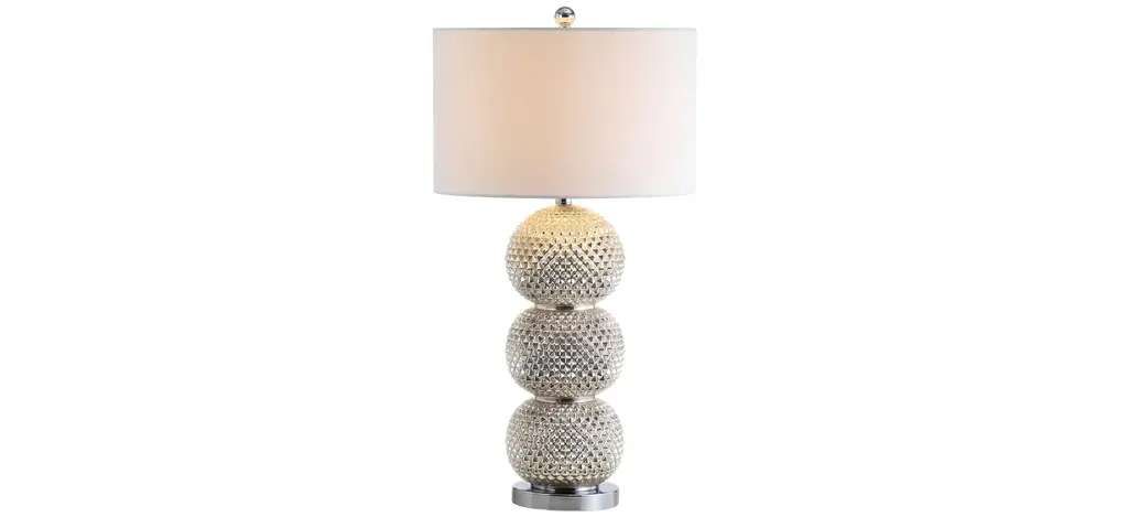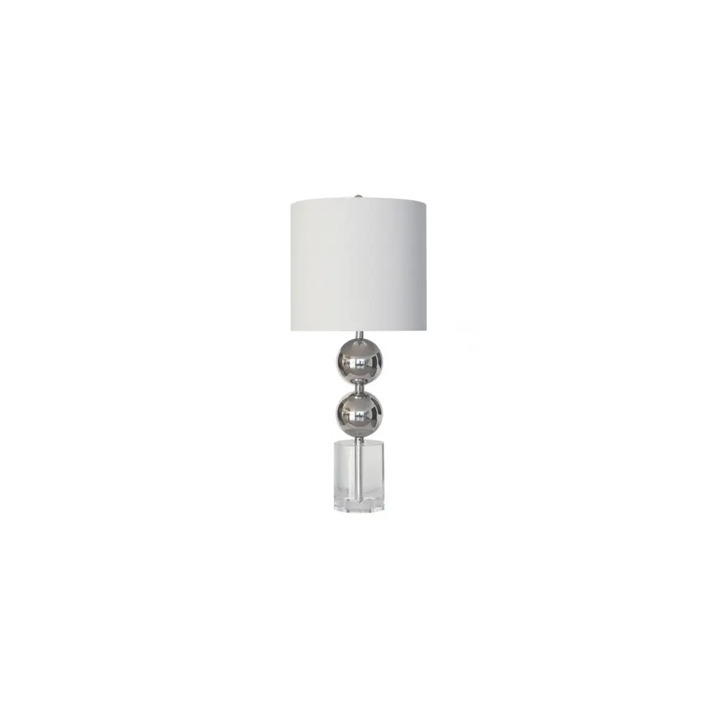 Shimmering and stylish, this contemporary Auster Table Lamp brings modern luxury to any living room or bedroom. Finely crafted in a chrome finish, it features a subtle design that lends rich texture. Its sleek tapered white shade creates a soft, inviting glow.