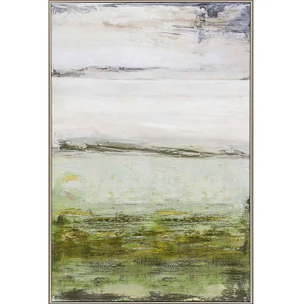 Before the Rain by Austin Alan James is a soft impression of the skies right before the rain. This giclee is accented with gold leaf and floated in an antique silver frame.