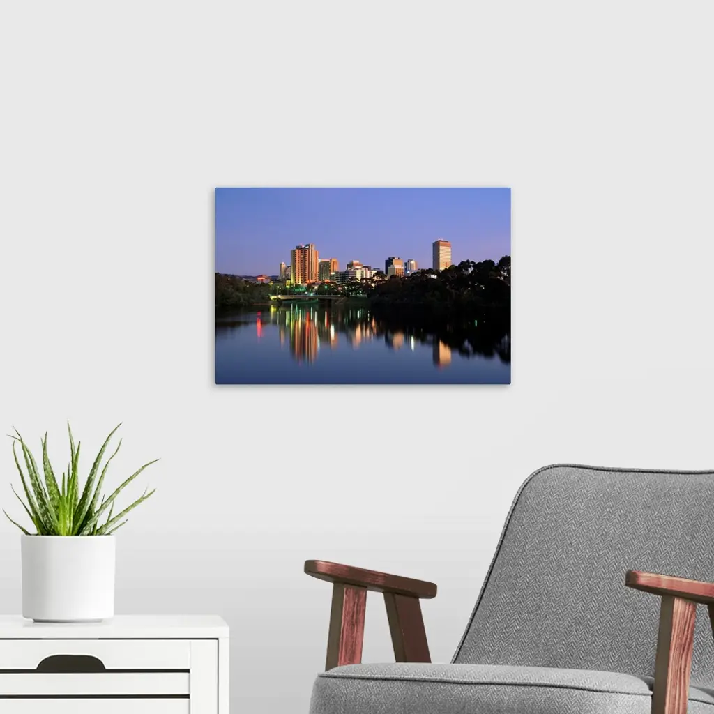 Australia, South Australia, Adelaide, View of the town from Torrens Lake
