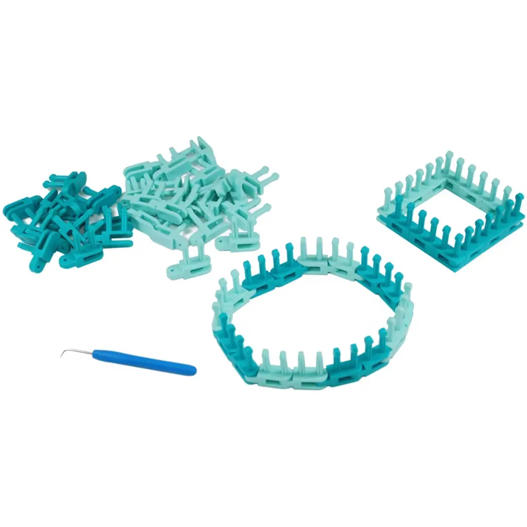 Now you can create a custom knitting loom. It's so much fun to create lots of shapes and sizes. Possibilities are endless! This 7x7.5x1.75 inch package contains 24 rotating links, 12 straight links, knit hook and instructions. Imported.