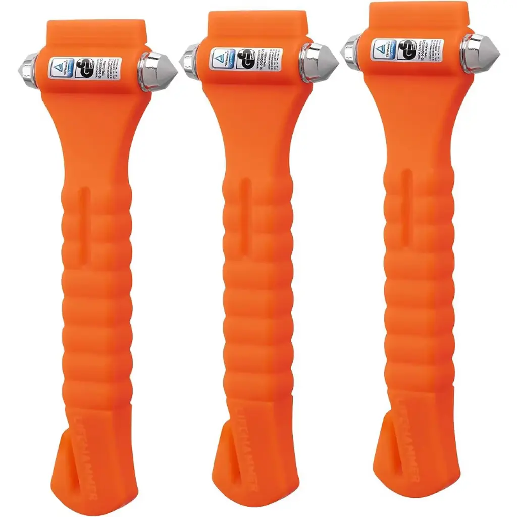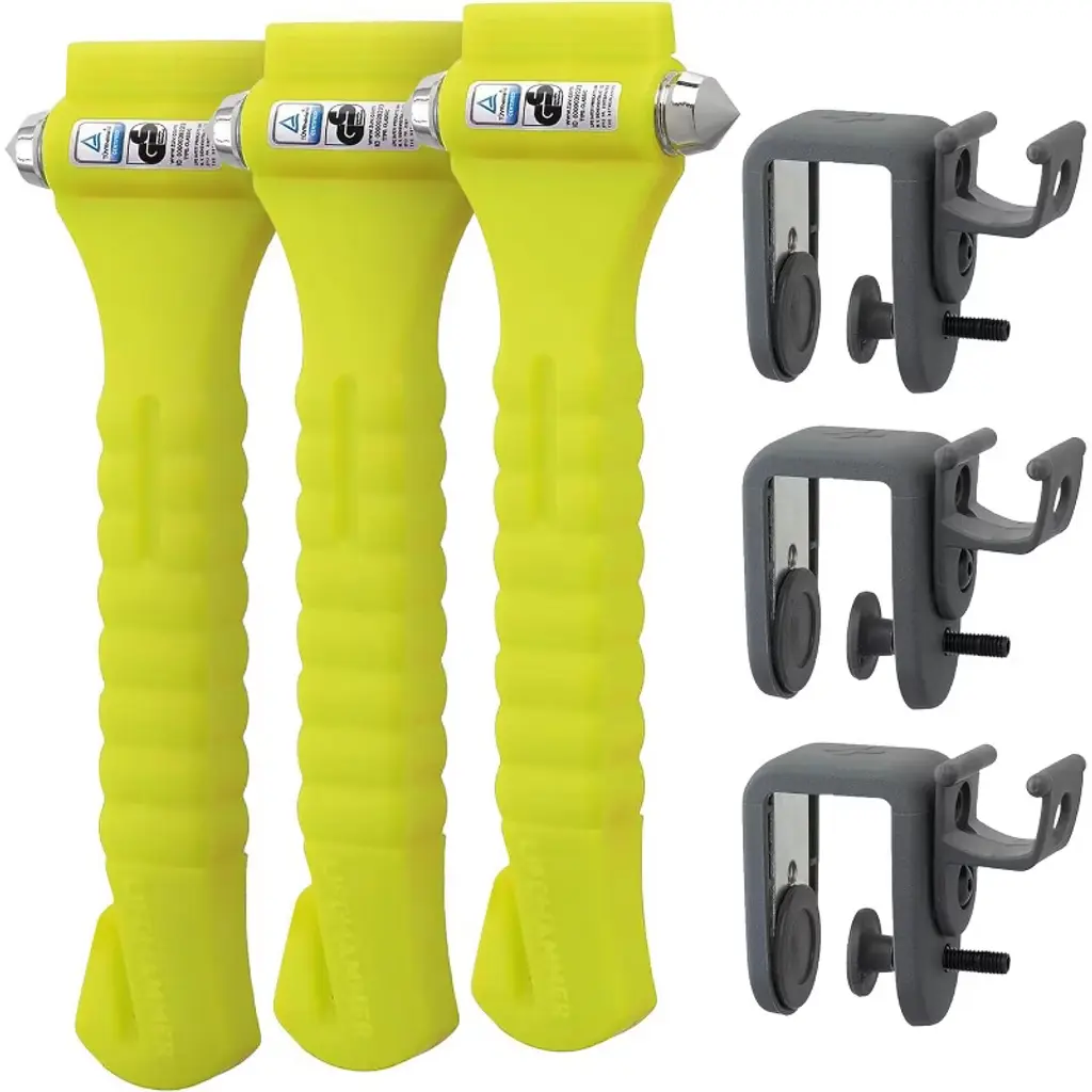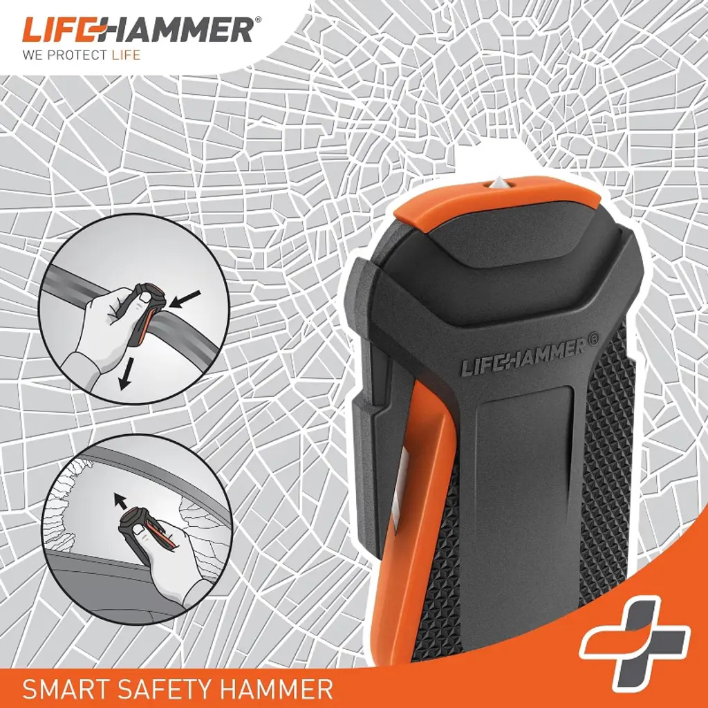 Spring-loaded tip breaks glass on impact without effort Built-in seatbelt cutter enables fast escape Anti-slip grip and car mount for secure, ready access