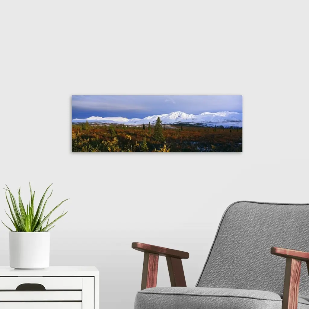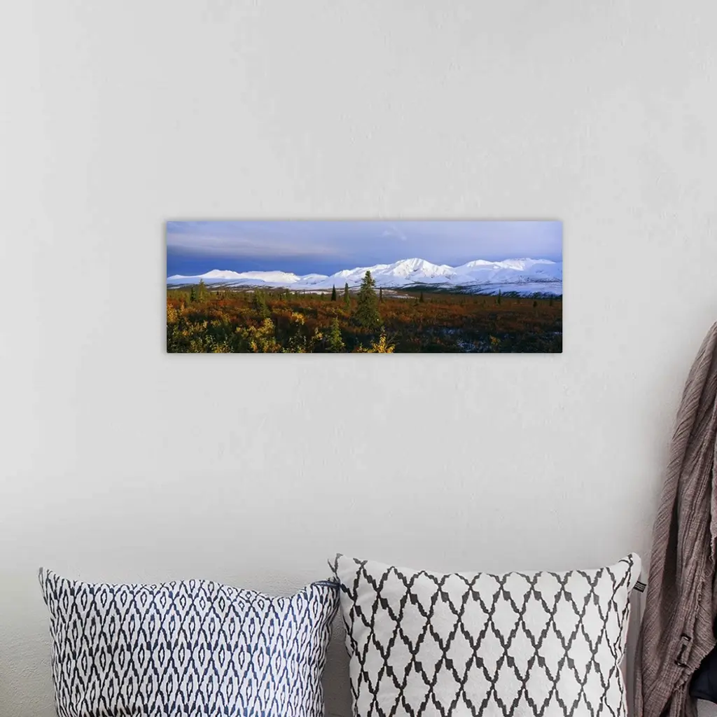 Autumn color foothills, snow-covered Alaska Range, Denali National Park, Alaska wall art for home and office decor. Discover canvas art prints, photos, mural, big canvas art and framed wall art in GreatBigCanvas.com's varied collections.