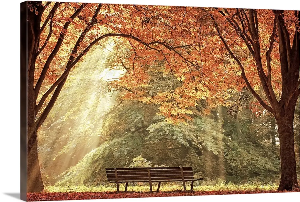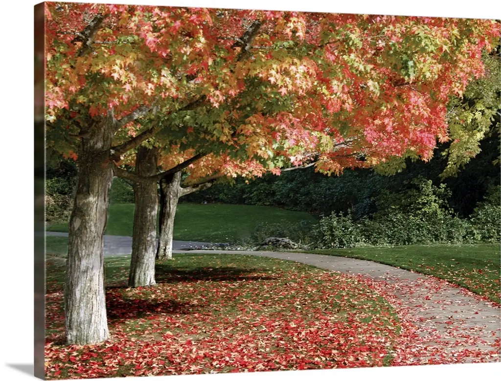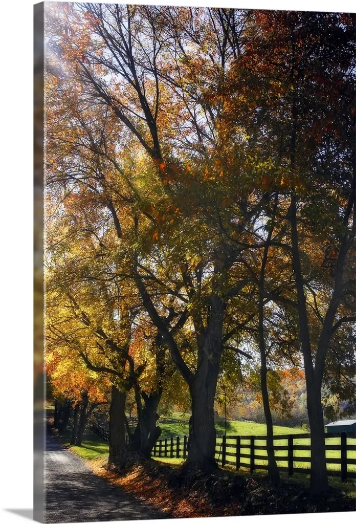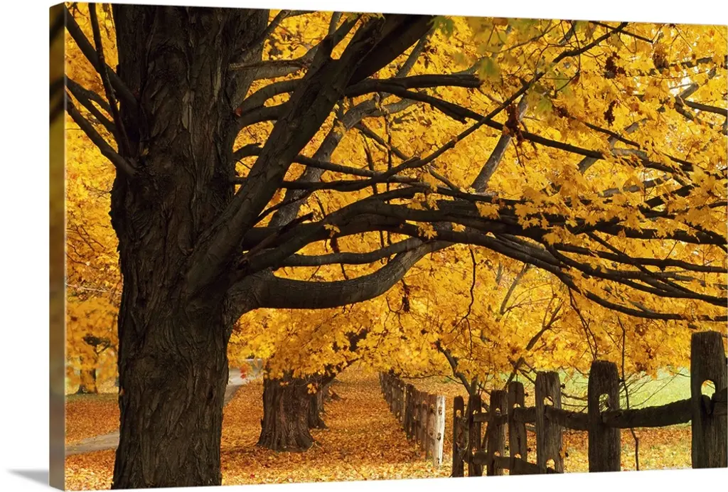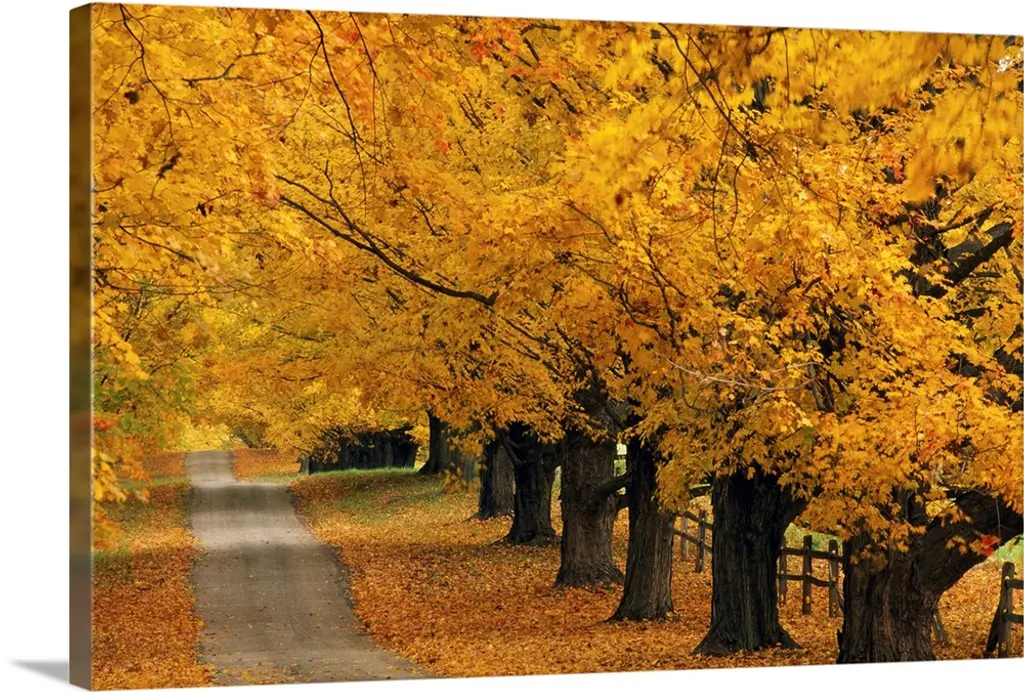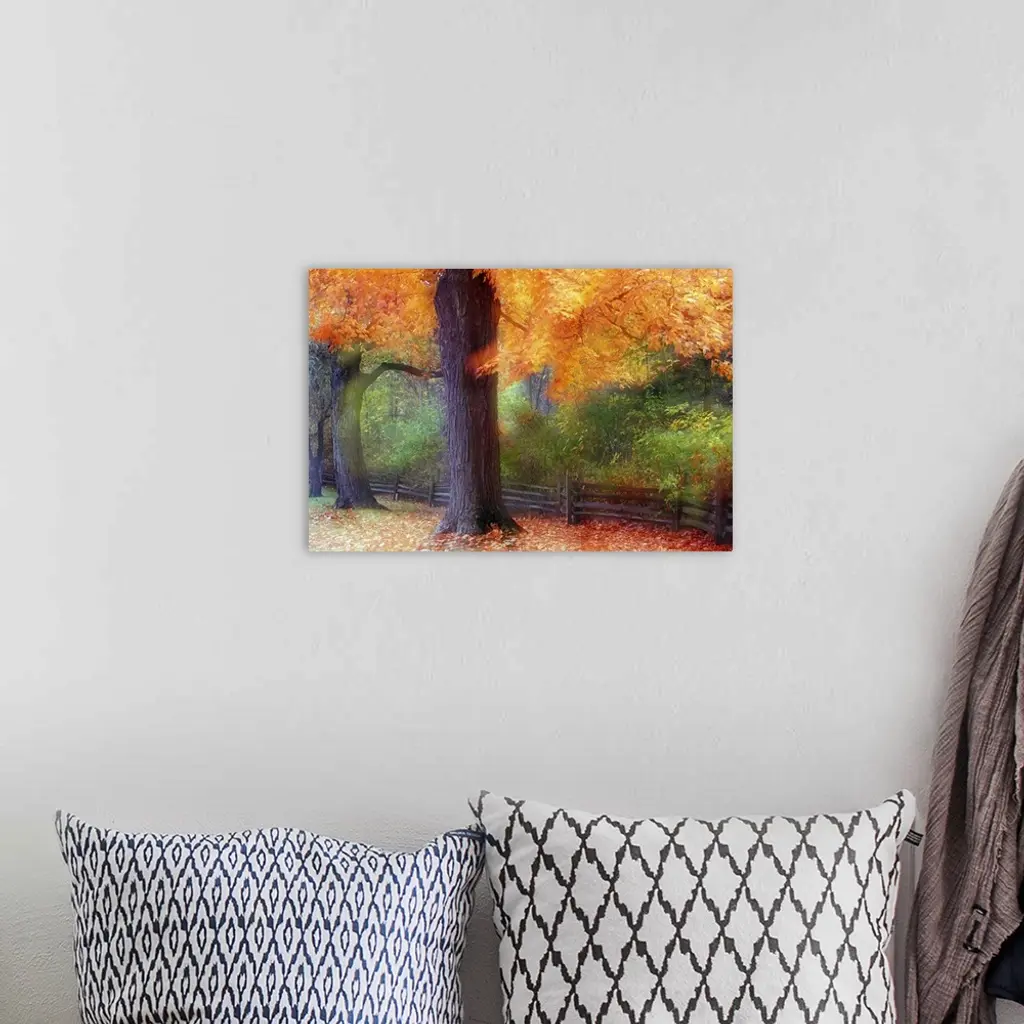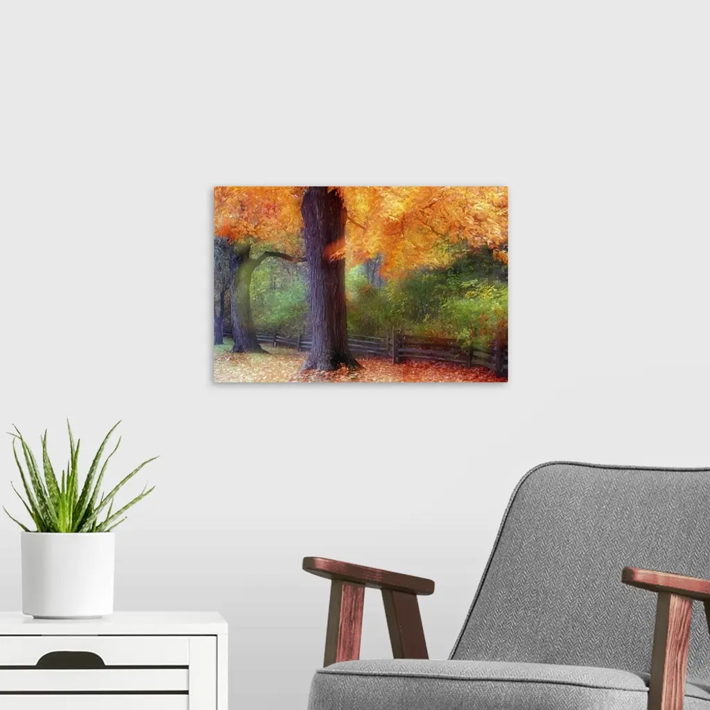 Autumn Color Maple Trees By Fence Line, Soft Focus, Michigan