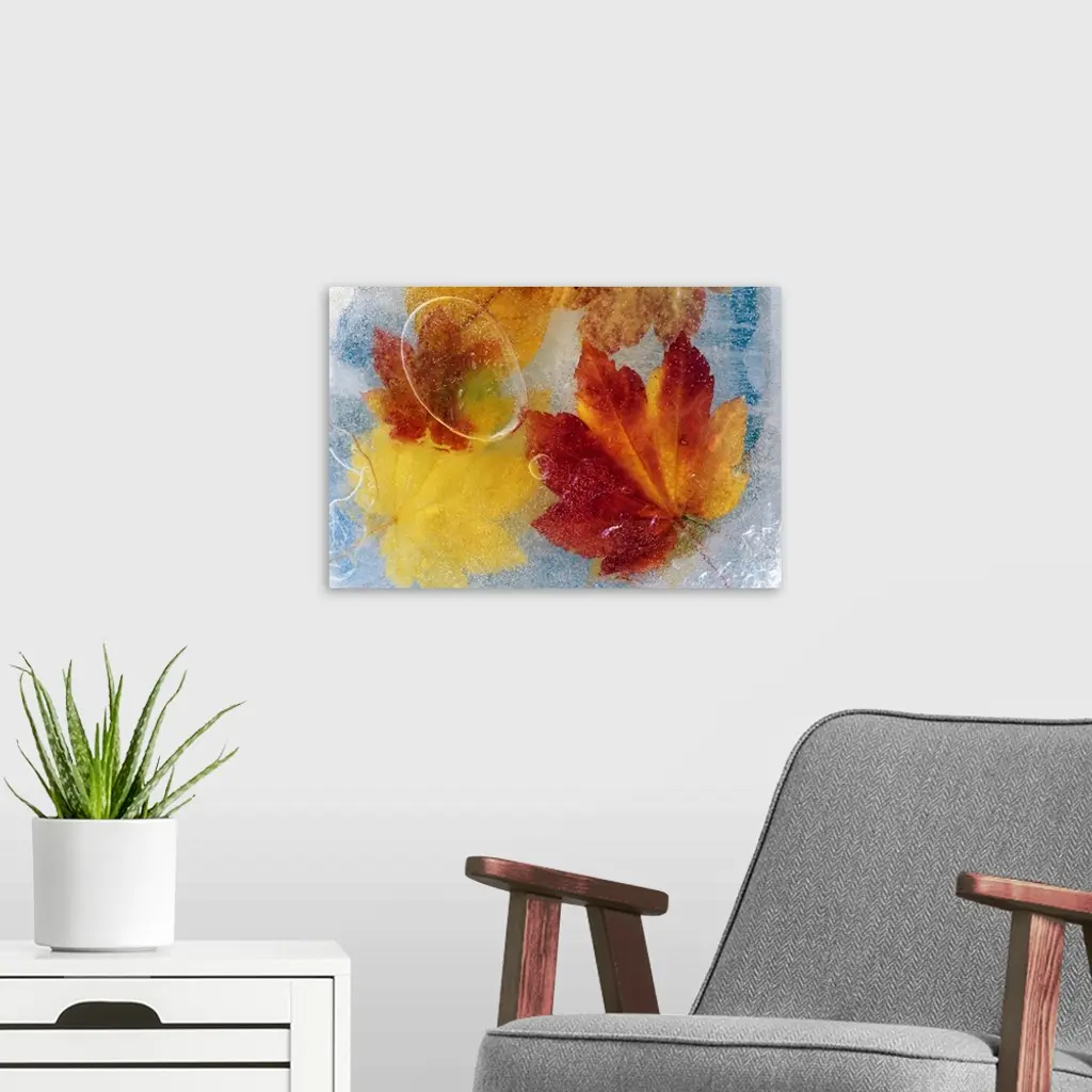 Autumn color vine maple leaves under ice, Oregon, united states, wall art for home and office decor. Discover canvas art prints, photos, mural, big canvas art and framed wall art in GreatBigCanvas.com's varied collections.