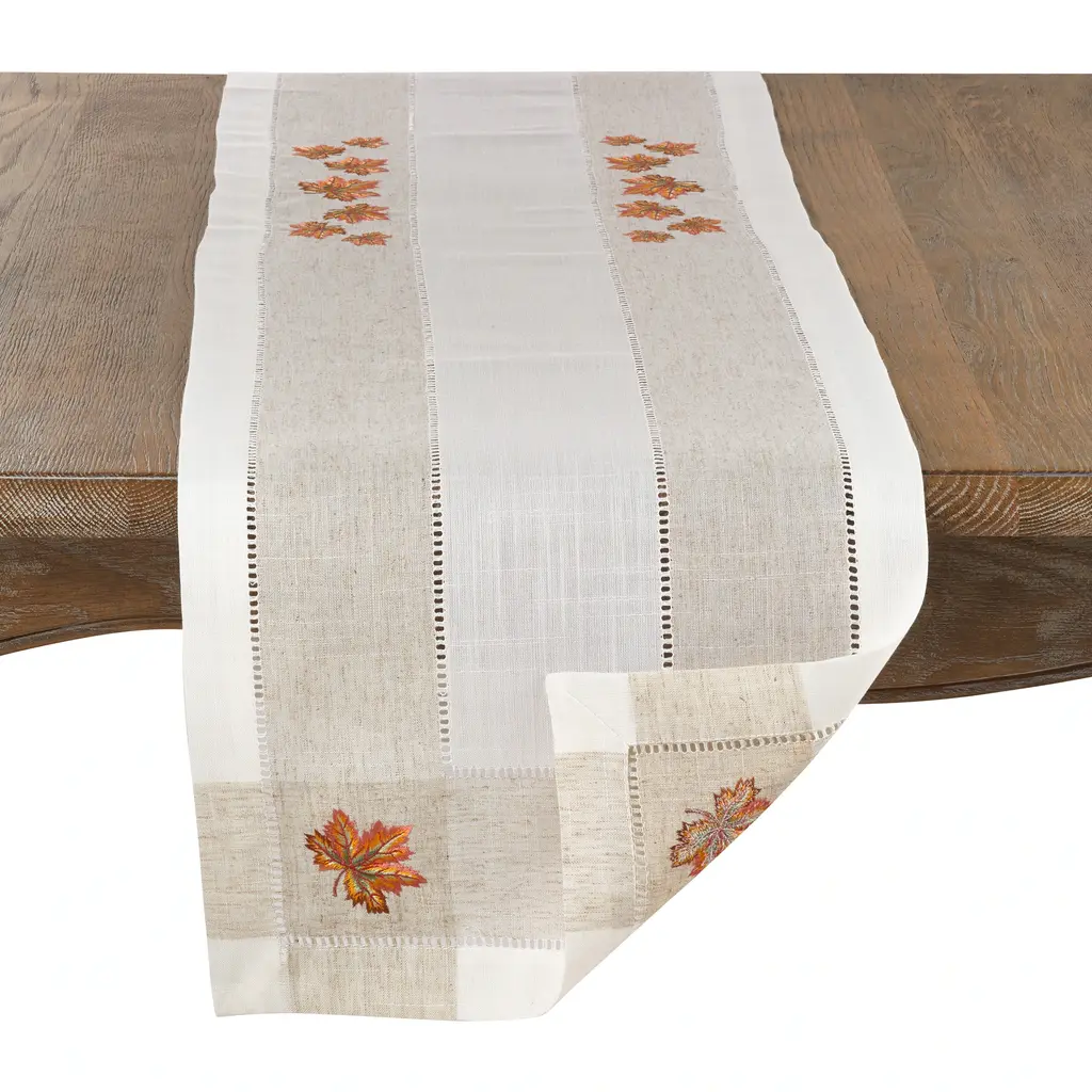 When it comes to the holiday season, sure, we have fun, and there are loads of Christmas decorations that are oftentimes, fun in nature, but with respect to Christmas itself, it's always nice to have a touch of class thrown in there. With this beautifully-made, oblong-shaped, embroidered leaf hemstitch table runner, made from a poly blend, you bring grace to any table and refinement to any party.