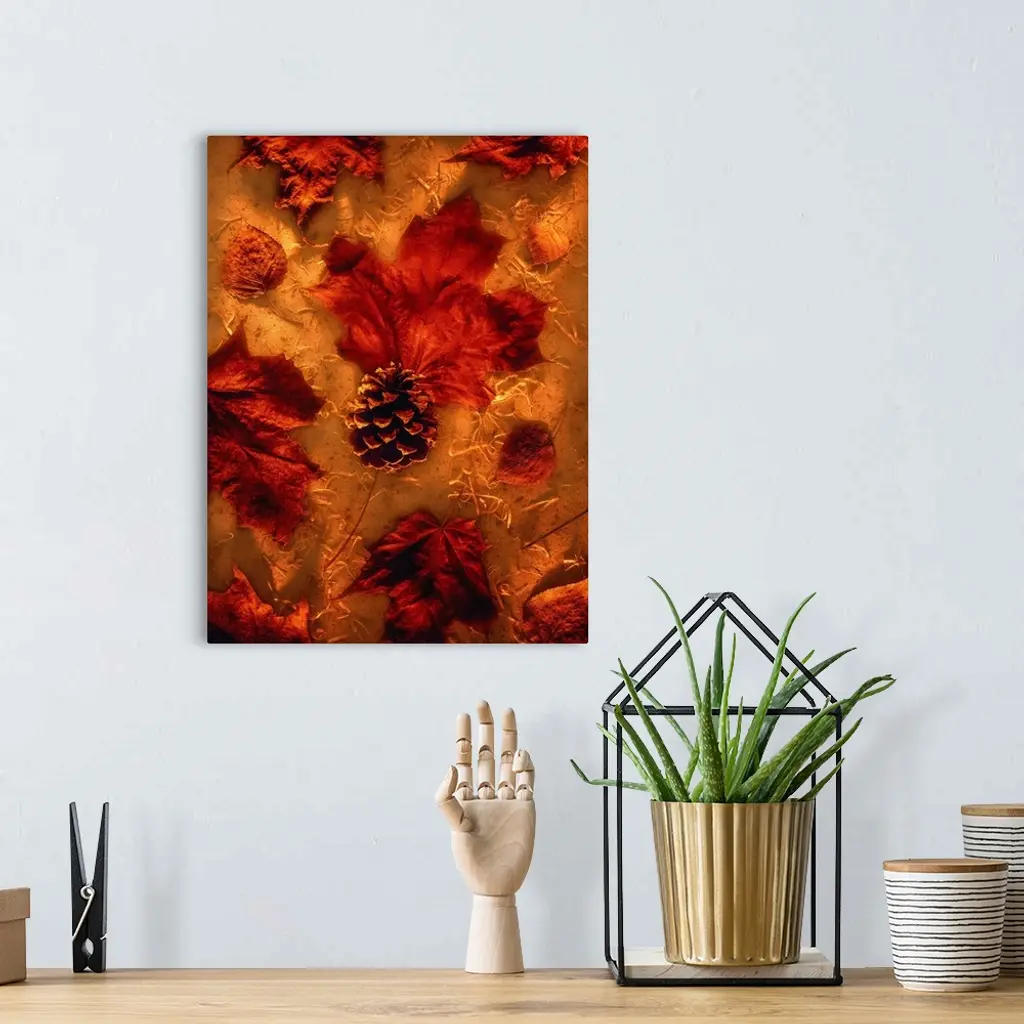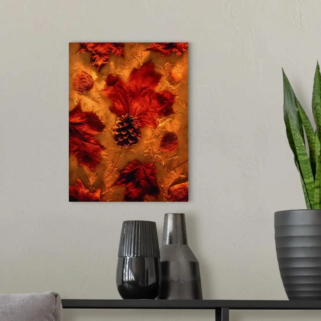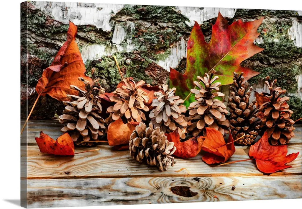 Autumn Maple Leaves and Pine Cone