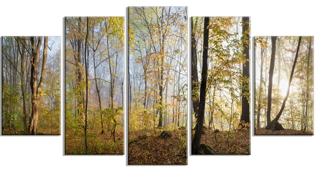 "Autumn Mountain Waterfall Close View" Landscape Photo Art, 5 Panels, 60"x32"
