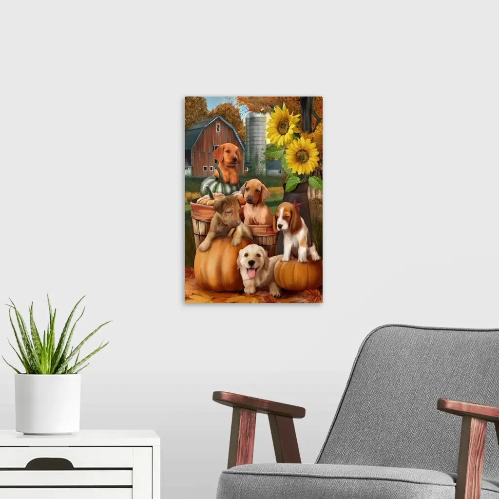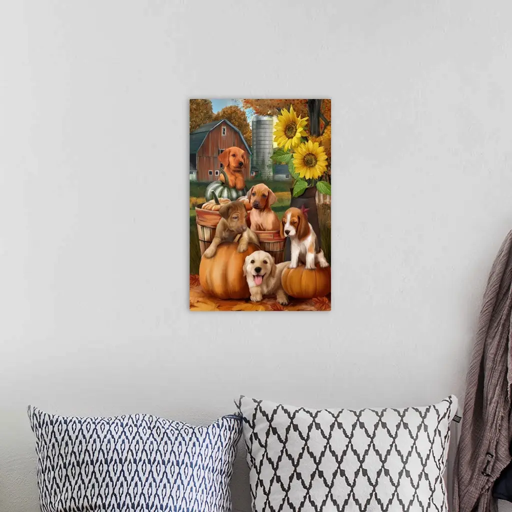 Autumn Puppies wall art for home and office decor. Discover canvas art prints, photos, mural, big canvas art and framed wall art in GreatBigCanvas.com's varied collections.