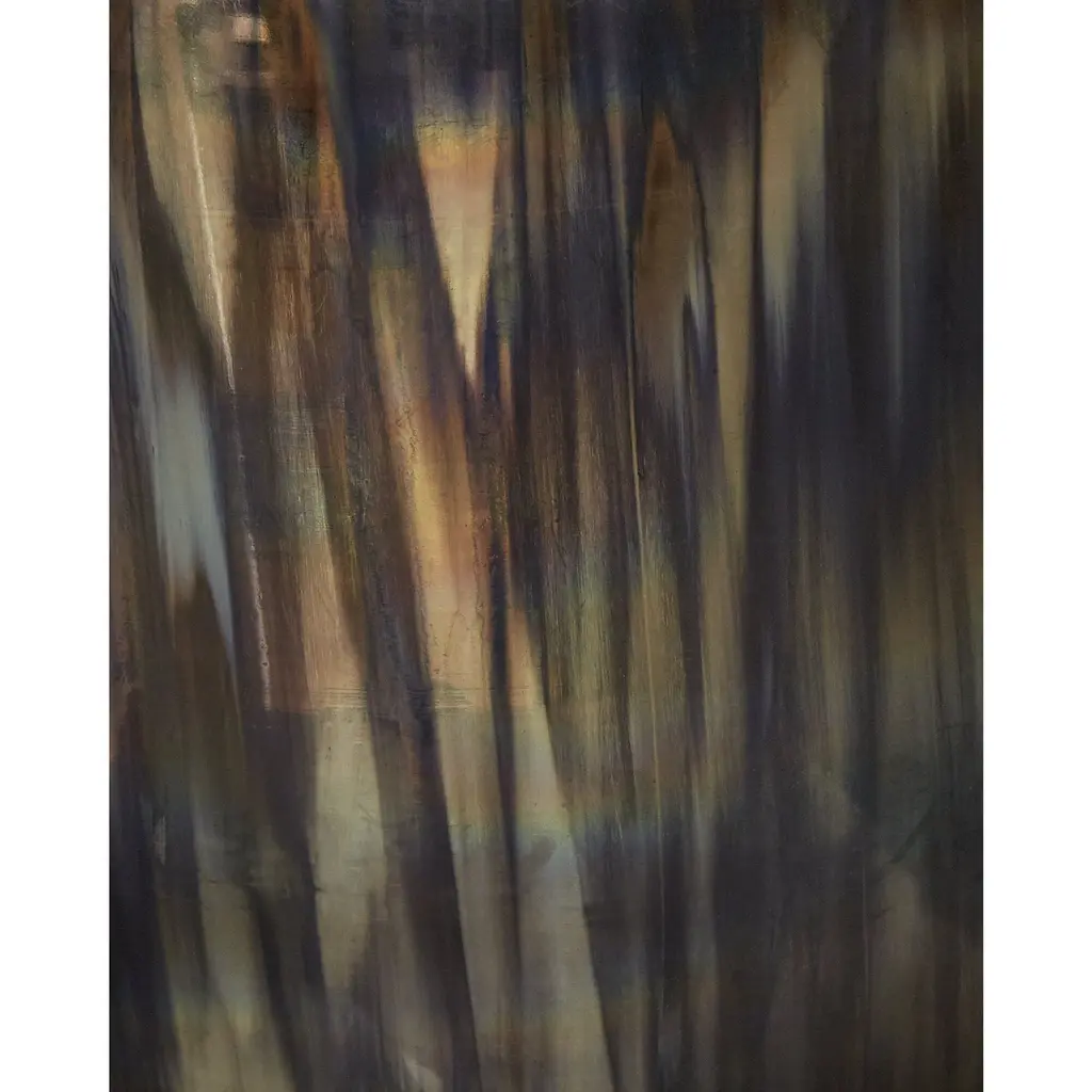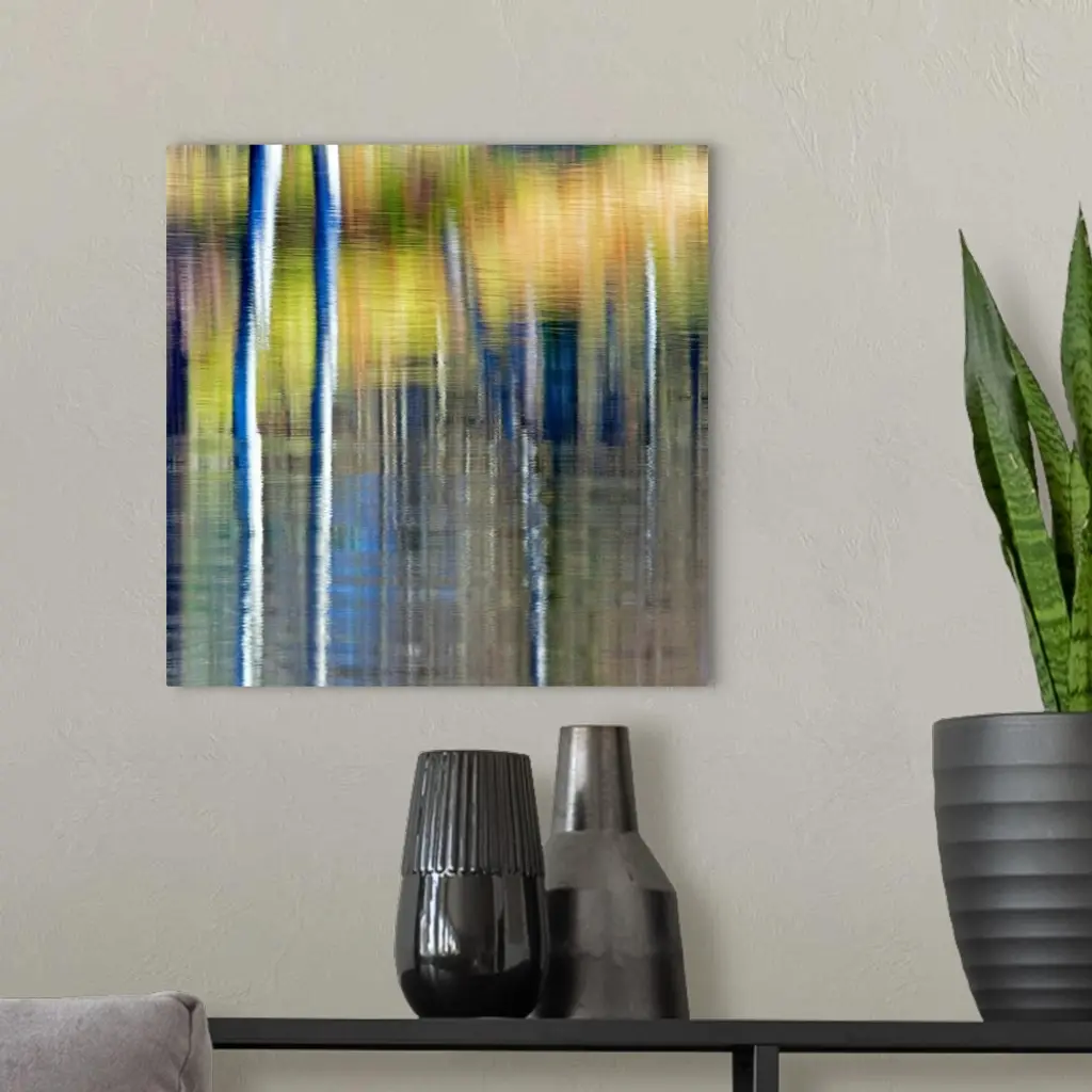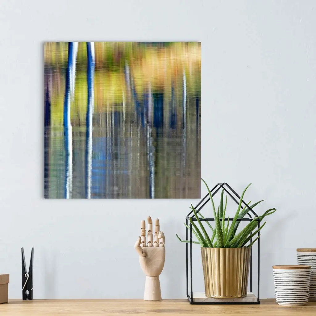 An abstracted autumn reflection of autumn foliage in golden yellows in water.