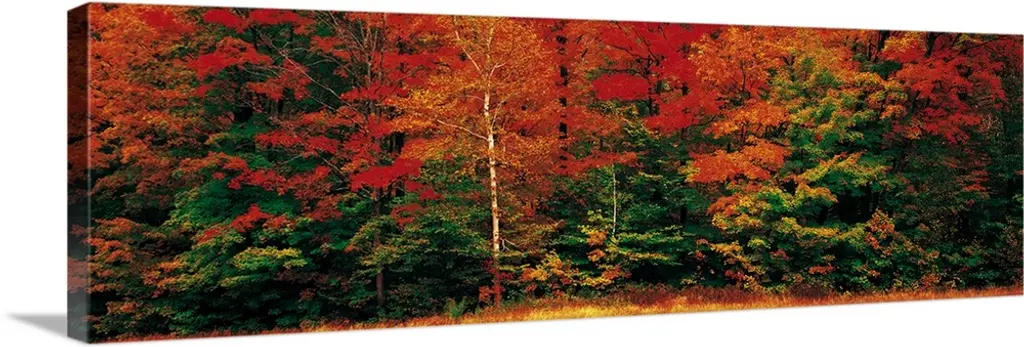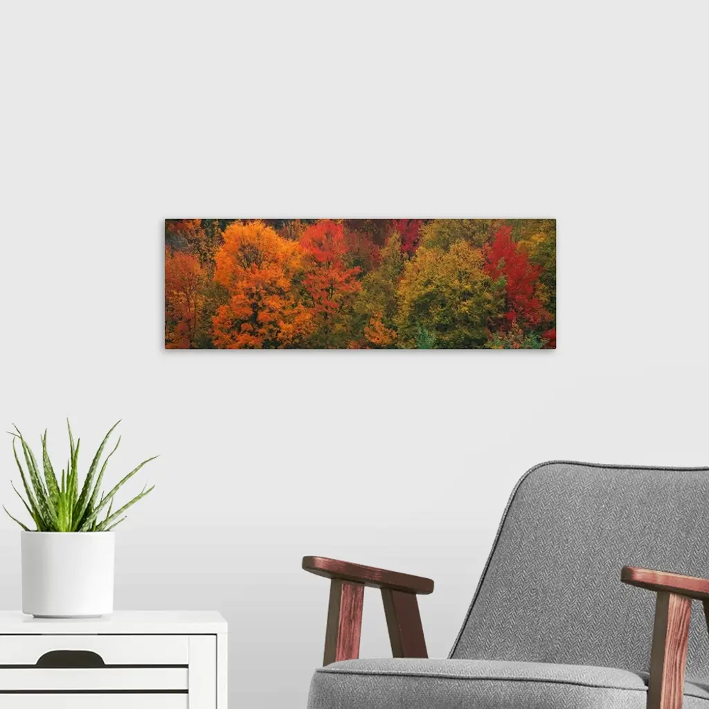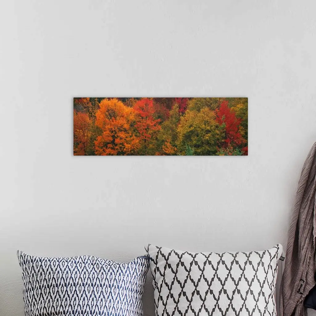 Aerial photograph on a giant canvas of fall colored trees in Connecticut.