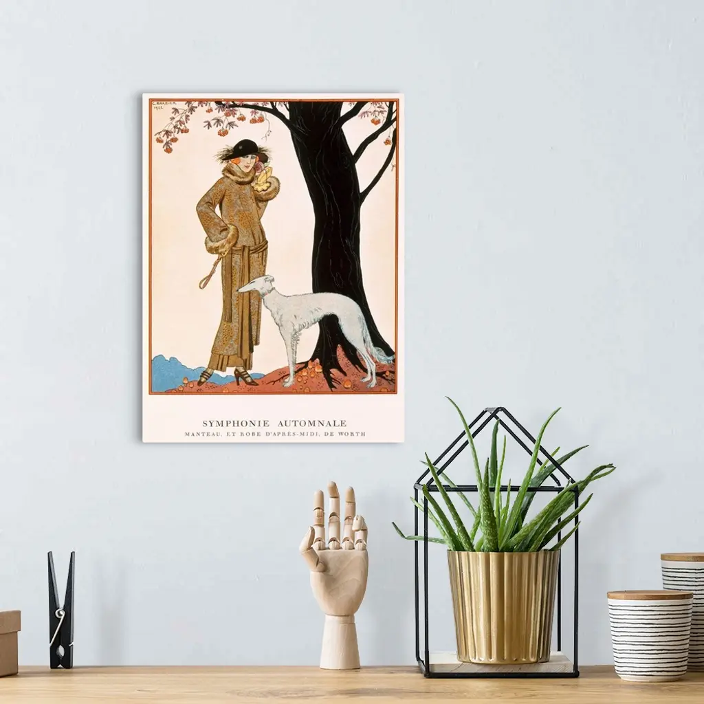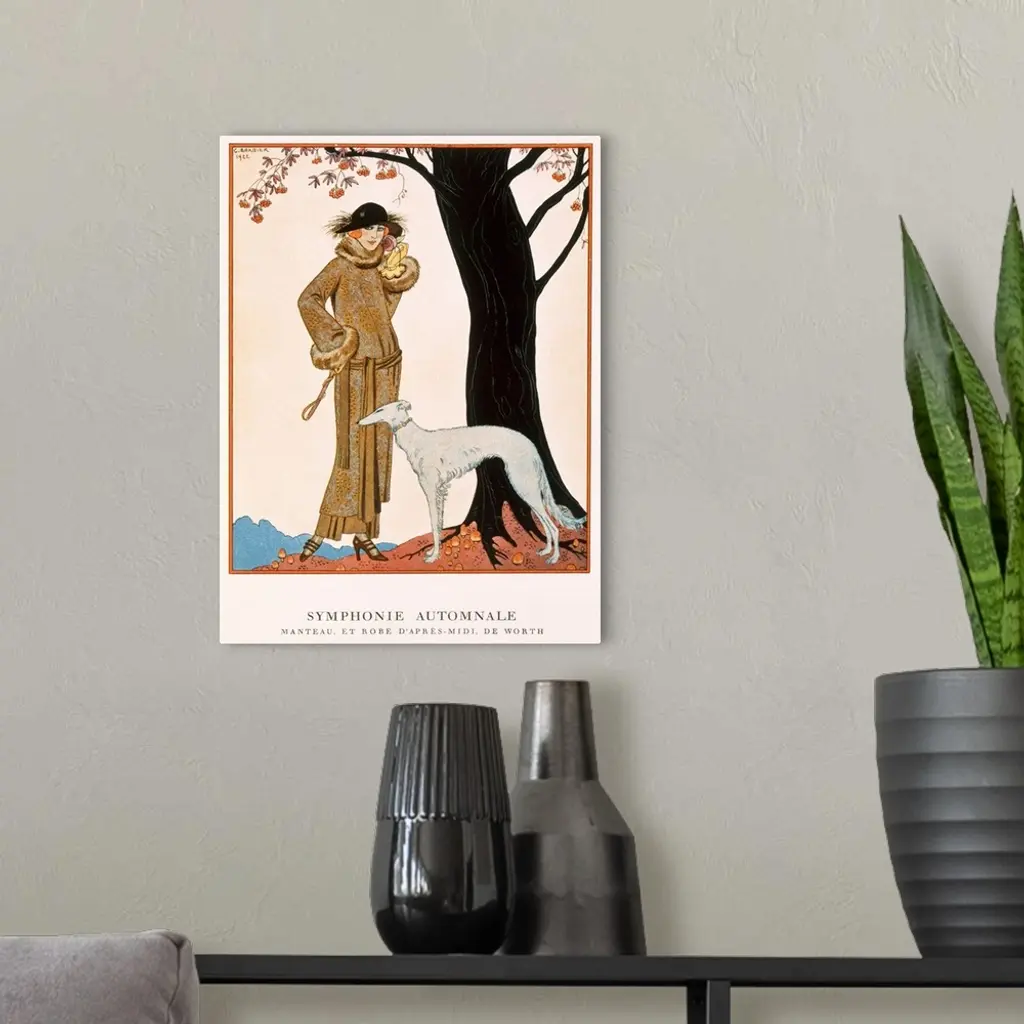 STC63221 Autumnal Symphony, afternoon coat and dress by Worth, from 'Gazette de Bon Ton' No.9, 1922 by Barbier, Georges (1882-1932); Private Collection; The Stapleton Collection; French, out of copyright
