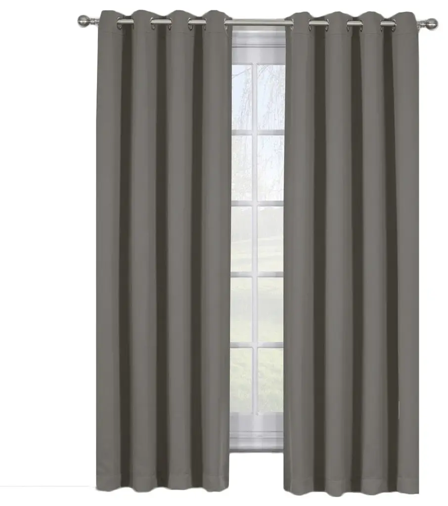 Add Privacy to any room with these Ava Blackout Weave Grommet Curtains Panels With Tie Backs. This trendy and functional curtain panel pair was made using triple weave technology. It''s blocks out the glaring sunlight during the hot summer months, and keeps cold drafts adrift. Block unwanted light and protect your room against outside temperatures with these blackout curtains. These energy saving curtains are both beautiful and practical. The simple, attractive styling complements any decor, and the grommet top offers easy installation. Slip a decorative rod through the grommets to quickly create a classic gathered look.•100% Polyester•Blackout Sunlight, Noise Reduction•Grommet Panels with Tie Backs•Silver Grommet/Eyelet with 1.5 Inch Internal grommet diameter•Saves on home heating and cooling costs•Triple Weave Technology•Sold in Pairs - Each package contains two panels •Royal Tradition Collection•Machine Washable - Easy Care Available Sizes Include:•108" W X 63" L Pair. (54" W x 63" L Each) •108" W X 84" L Pair. (54" W x 84" L Each)•108" W X 96" L Pair. (54" W x 96" L Each)•108" W X 108" L Pair. (54" W x 108" L Each)
