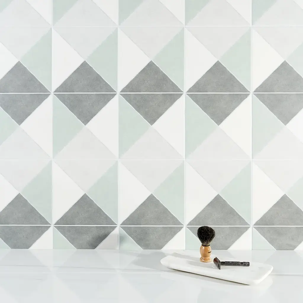 With a trio of colors, the Ava Diamond tile is a unique piece to add to any design. This 9x9 matte porcelain tile is hygge-approved with its minimalistic pattern and soothing palette. Use in any space to create a pleasing ambiance for guests.