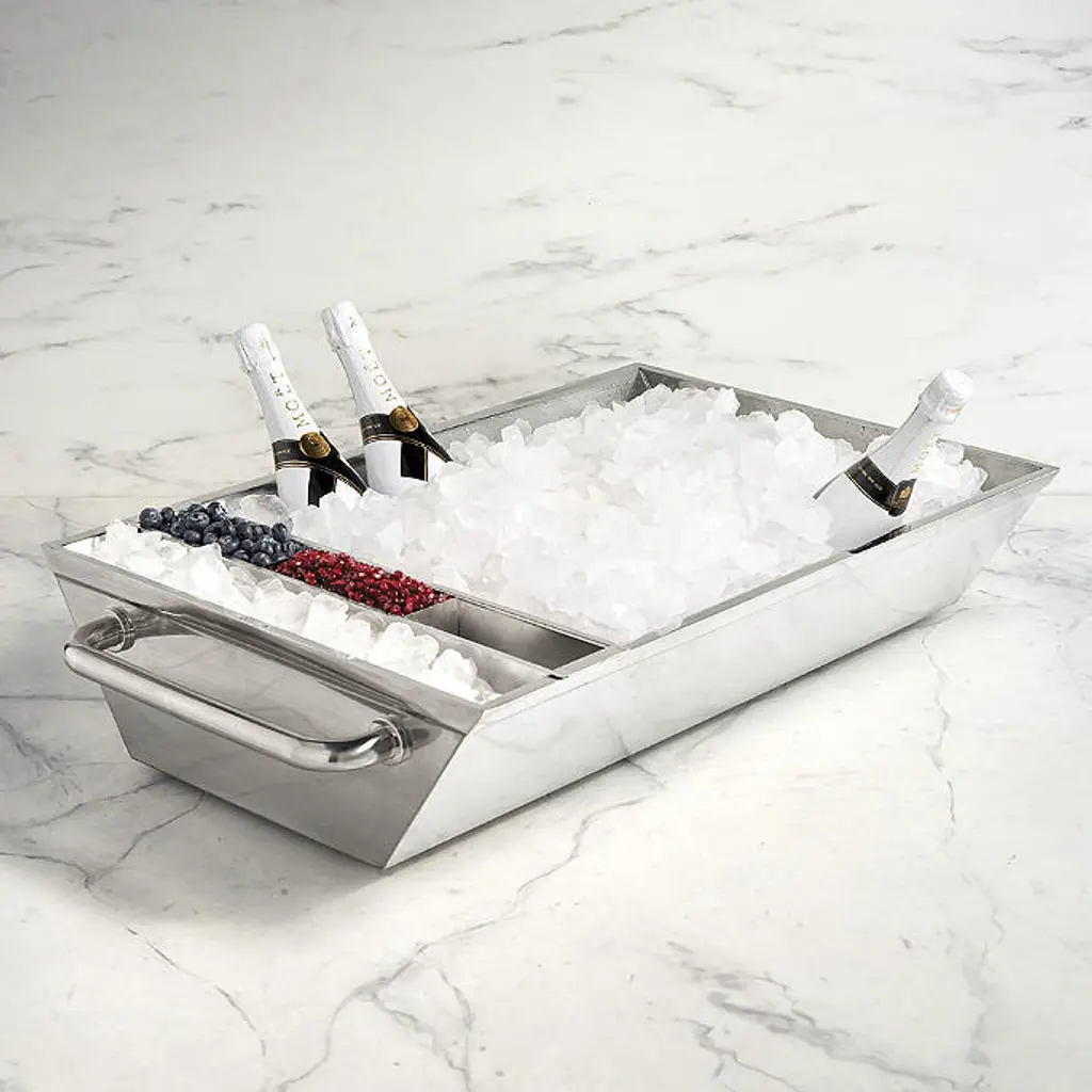 Cool it down and dress it up for outdoor entertaining with our Double Walled Beverage Tub. Double walls of stainless steel retain their chill without sweating on your tabletop or serving area. Avalon Double Walled Beverage Tub features:
