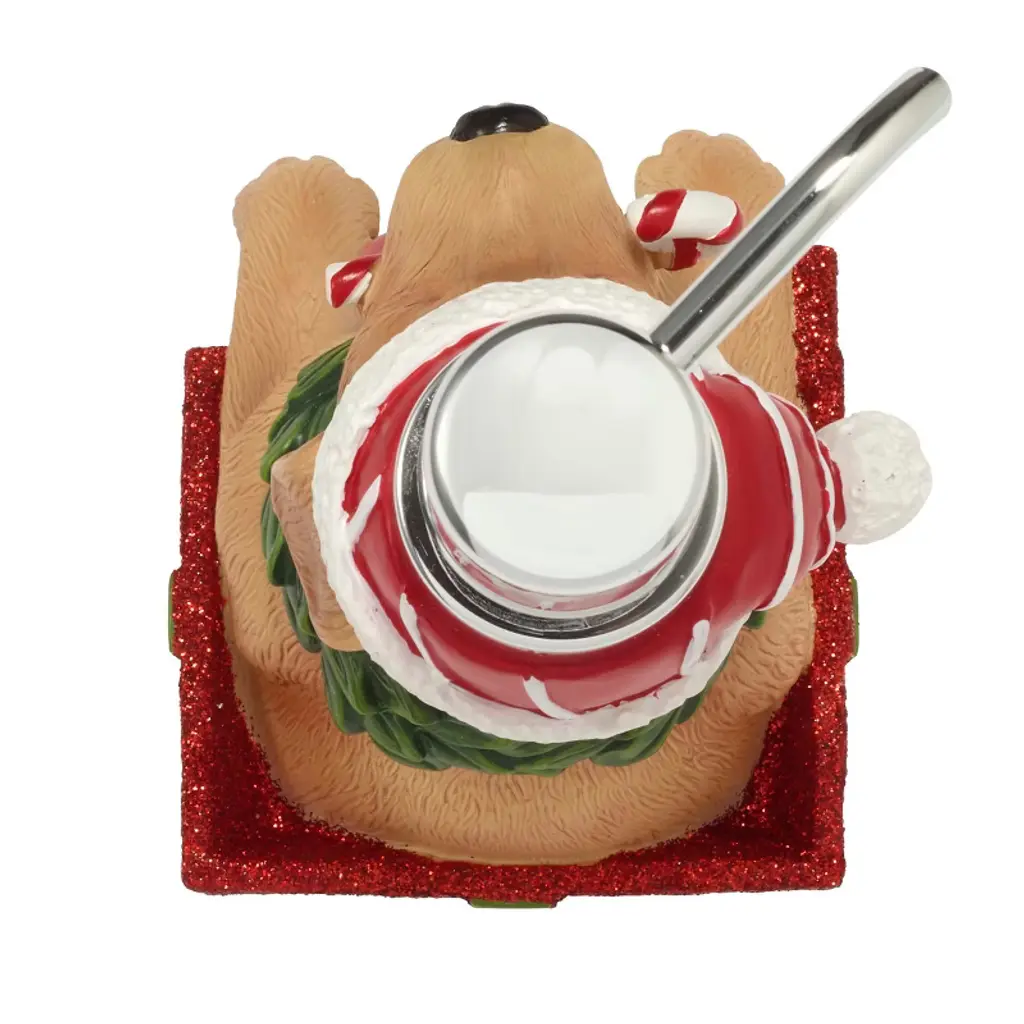 The Avanti Golden Gift Decorative Lotion/ Soap/ Sanitizer Dispenser features a figural golden retriever puppy with red bowtie and hat popping our of a glittery red gift box. The best gift ever!! Made of durable, hand-painted resin. Finished with a shiny silver pump.