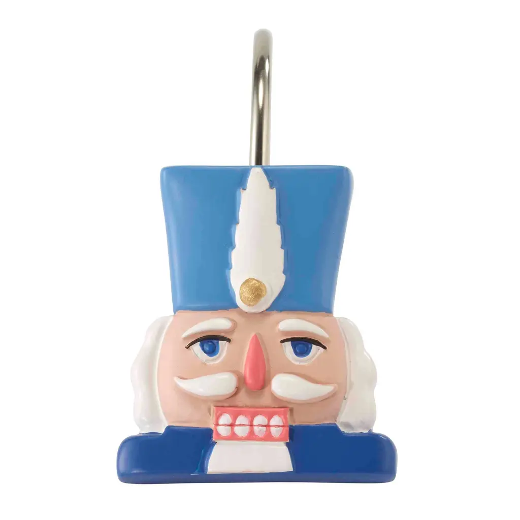 The Avanti Nutcracker Trellis Shower Curtain Hook Set features 2 different designs-a nutcracker and Christmas tree with red ornaments. Made of durable, hand-painted resin for long life and easy care and stainless steel hook, set of 12, 6 of each design. Other coordinating pieces available.