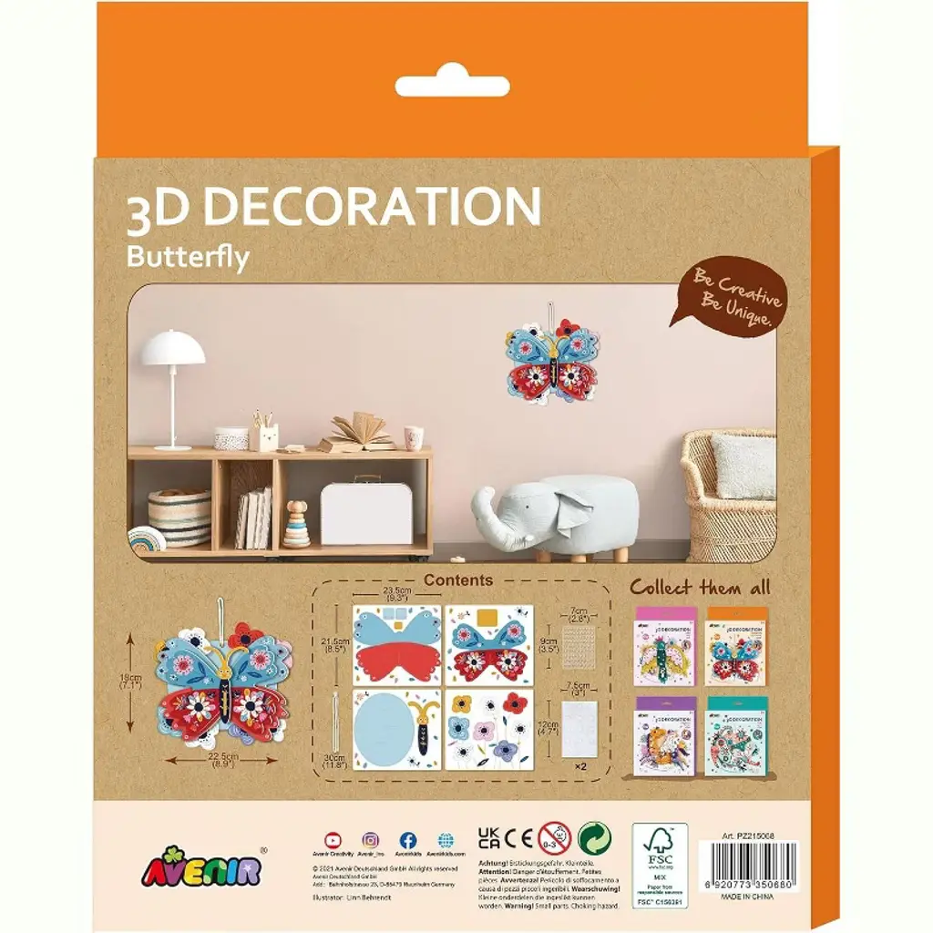 Avenir Create My Own 3D Decoration Kit – Butterfly, Includes Pre-cut Pieces & Hanging String, Ages 5 And Up