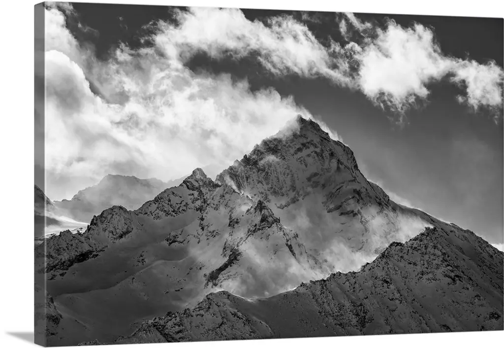 Averau mountain covered by snow and with light rays filtering through clouds, Dolomites, Belluno, Italy, Europe