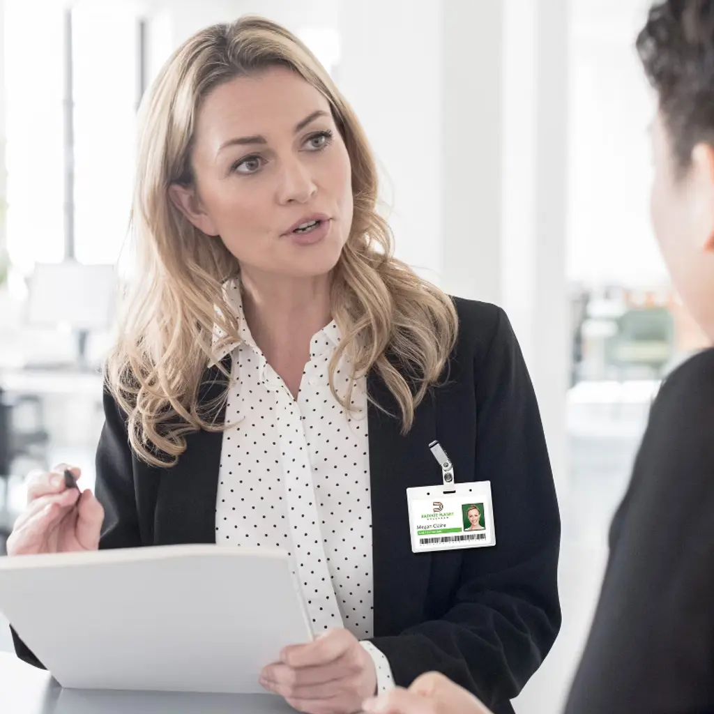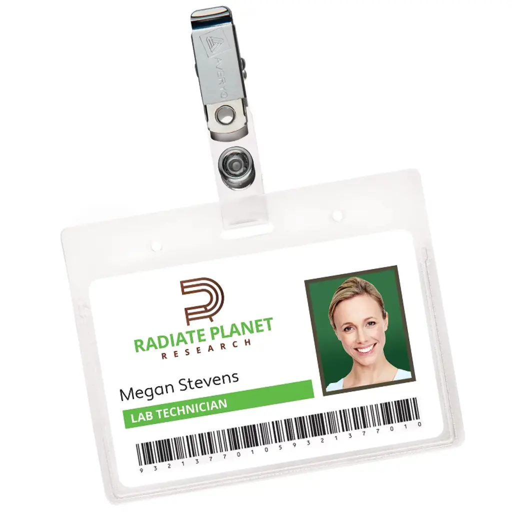 Have your name tags, staff ID cards, access control cards, or visitor passes visible and accessible with this pack of 50 Avery 2921 heavy-duty name badge holders with clips. Ideal for permanent or temporary identification, these horizontal 2.25” x 3.5” reusable name badges are made from PVC heavyweight plastic durable enough for everyday use. The convenient Secure Top design ensures cards, name badges, or other inserts stay secure, while the garment-friendly clip attaches to clothing without damaging fabric. These badge card holders are also compatible with Avery Badge Inserts 5390 (inserts sold separately), making them great for custom name tags for meetings and events, volunteer badges, name tags for kids, and more. Use these versatile and durable badge holders at the office, jobsite or corporate event, for the classroom or school field trip, at conventions or trade shows, or even at your next reunion, party or big family get-together.