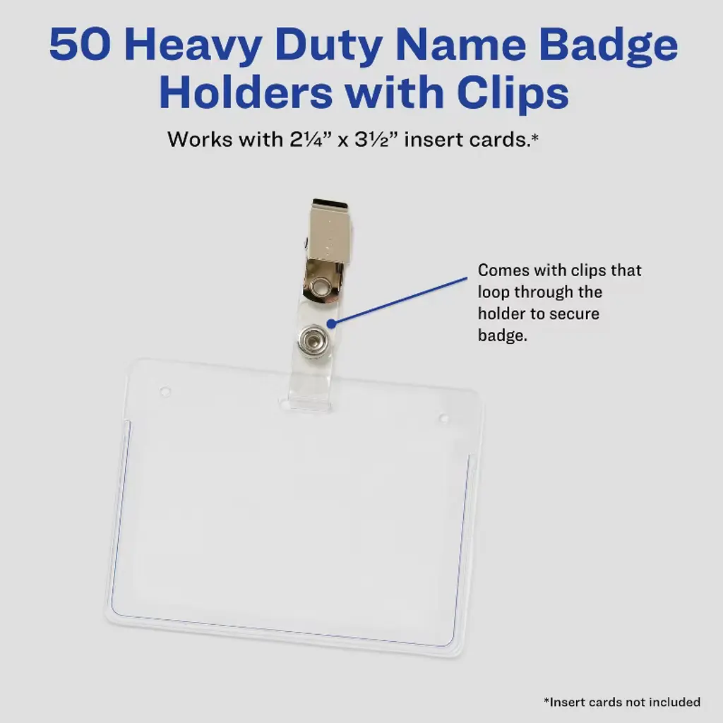 Avery Heavy Duty Badge Holders, 2.25" X 3.5", 50 Horizontal Name Badge Holders With Clips (2921)