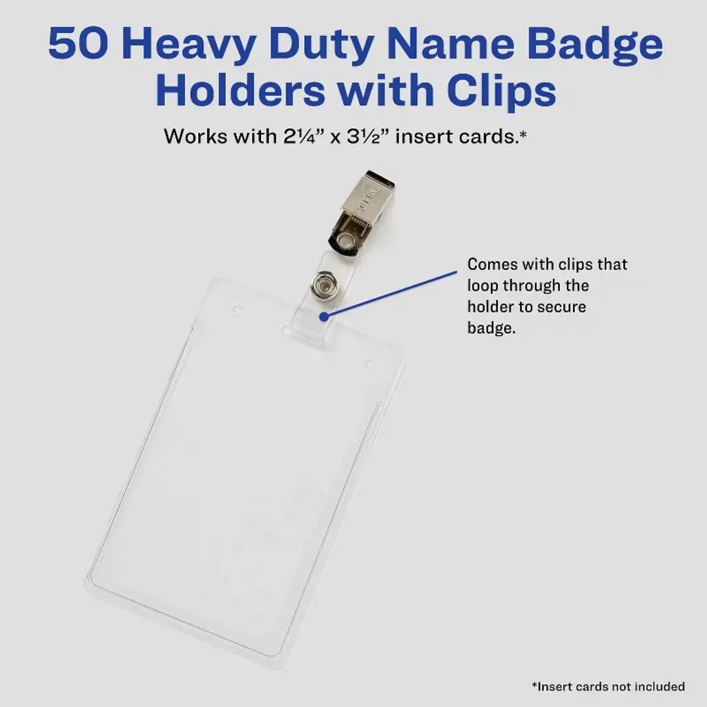 Avery Heavy Duty Badge Holders, 3.5" X 2.25", 50 Vertical Name Badge Holders With Clips (2920)