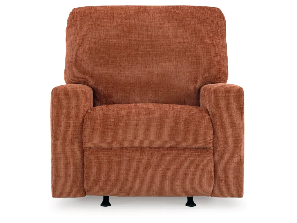 Looking to make a bold statement with color? Liven up your living room with the Aviemore rocker recliner. Its trend-right burnt orange upholstery adds a playful pop of color to your decor. Pairing posh style with everyday comfort, this piece is a welcome addition to contemporary spaces.