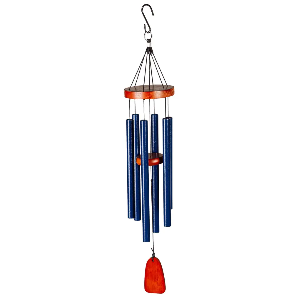 Every breeze brings the midnight blue chimes of this Avria Hand Tuned Wind Chime to life and allows the notes to Beethoven’s classic Midnight Sonata to drift through the air. Measuring 27 inches, this decorative and beautiful design features prominent notes within the song. Offering a deep color finish that is resistant to chipping and fading, the powder-coated tubes are complemented by the rich ash wood base, striker, and decorative shaped windsail. Each tube is tuned to precision and strung in a center pin design with a strong nylon woven cord to allow brilliant, unobstructed resonance.