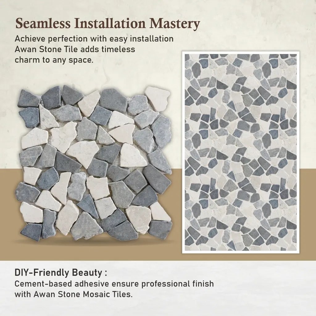 Awan Random Marble Mosaic, Back Splash Tiles For Kitchen Walls, Shower And Bathroom Floors 11.4" X 11.4" (4.5 Sqft Per Case) - Case (5 Tiles)