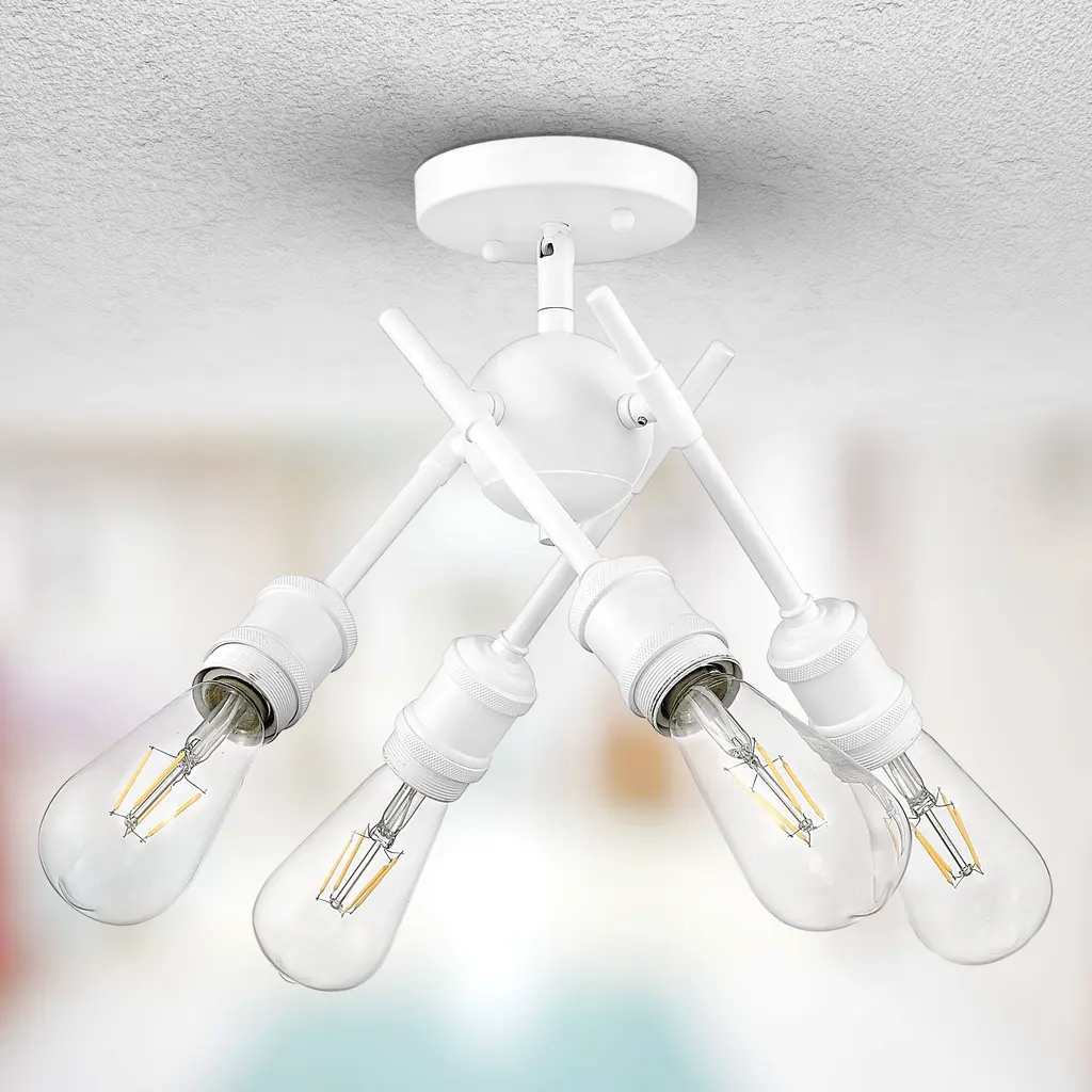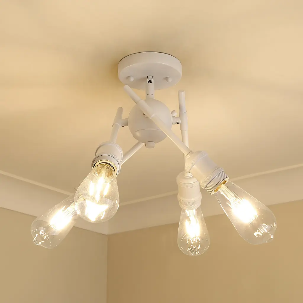 Axel is an artistic series of contemporary fixtures. Offered in a choice selection of modern finishes, this mid-century inspired collection is available with and without glass shades. Personalize the look of the fixtures by adjusting the placement of the sputnik arms to suit your fancy. The functional, mobile arms can be positioned to spread light in all directions. This semi-flush was designed for close-to-ceiling applications.